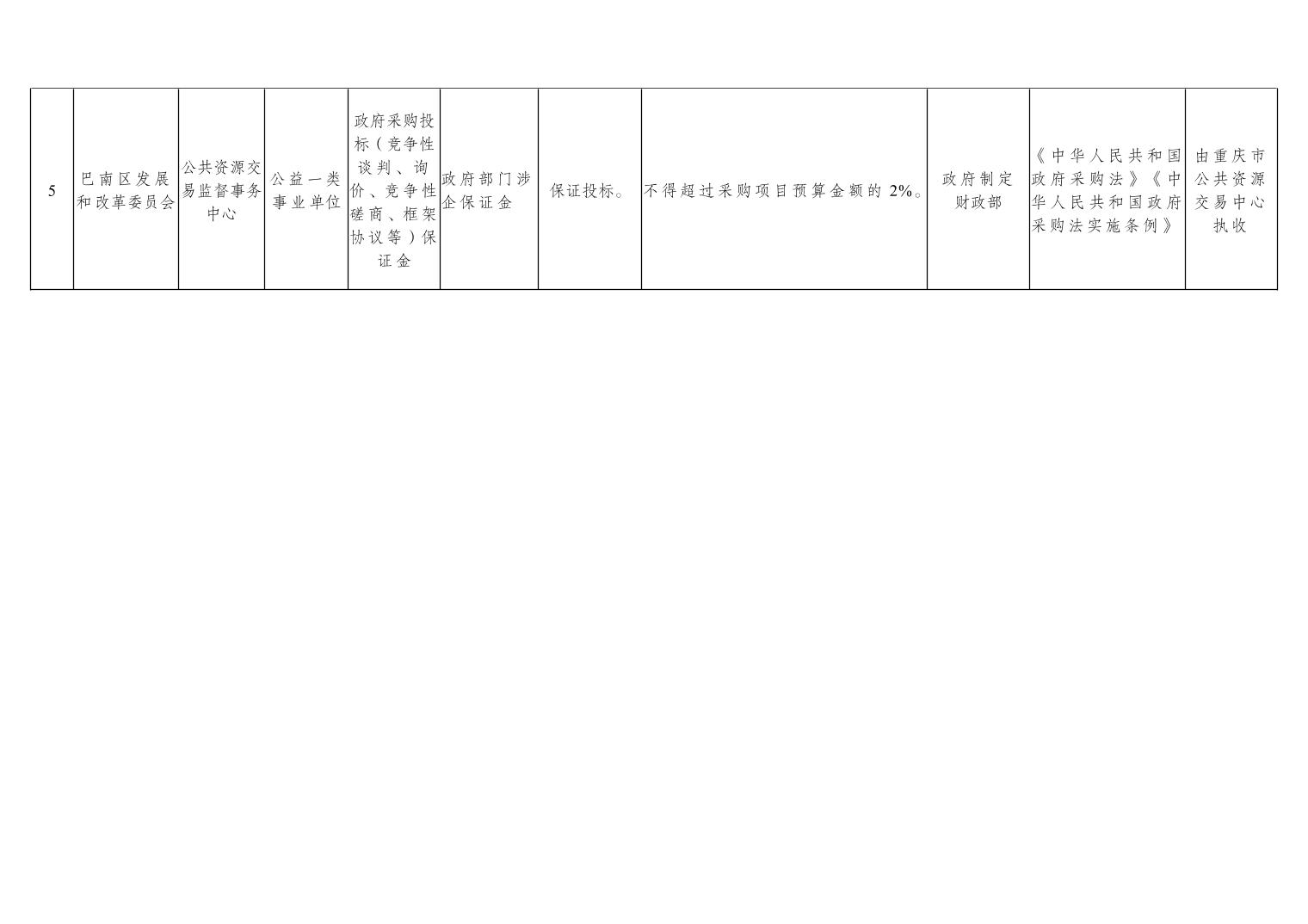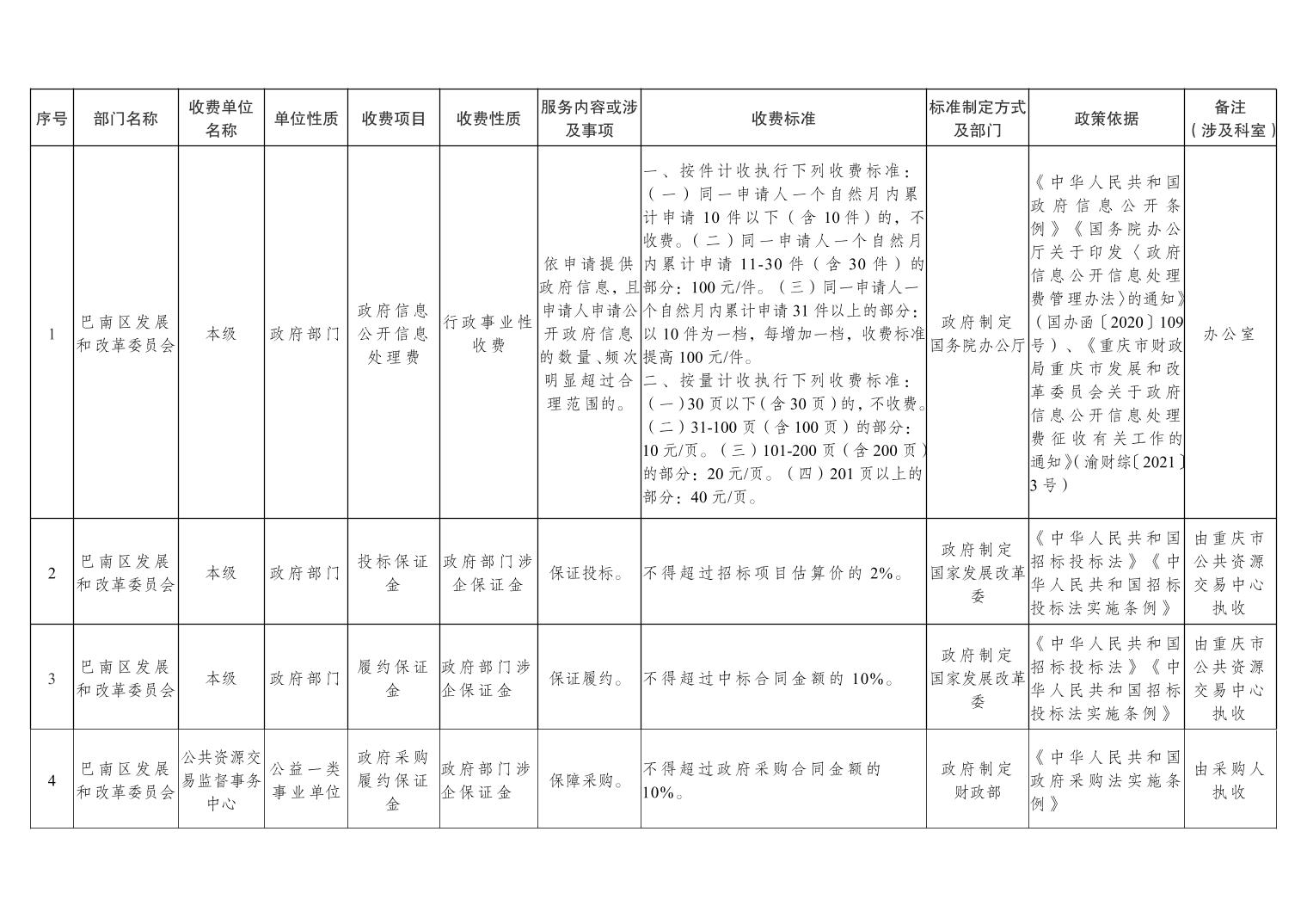 重庆市巴南区发展和改革委员会及下属单位综合性涉企收费目录清单