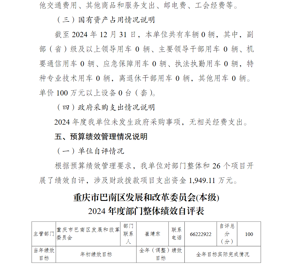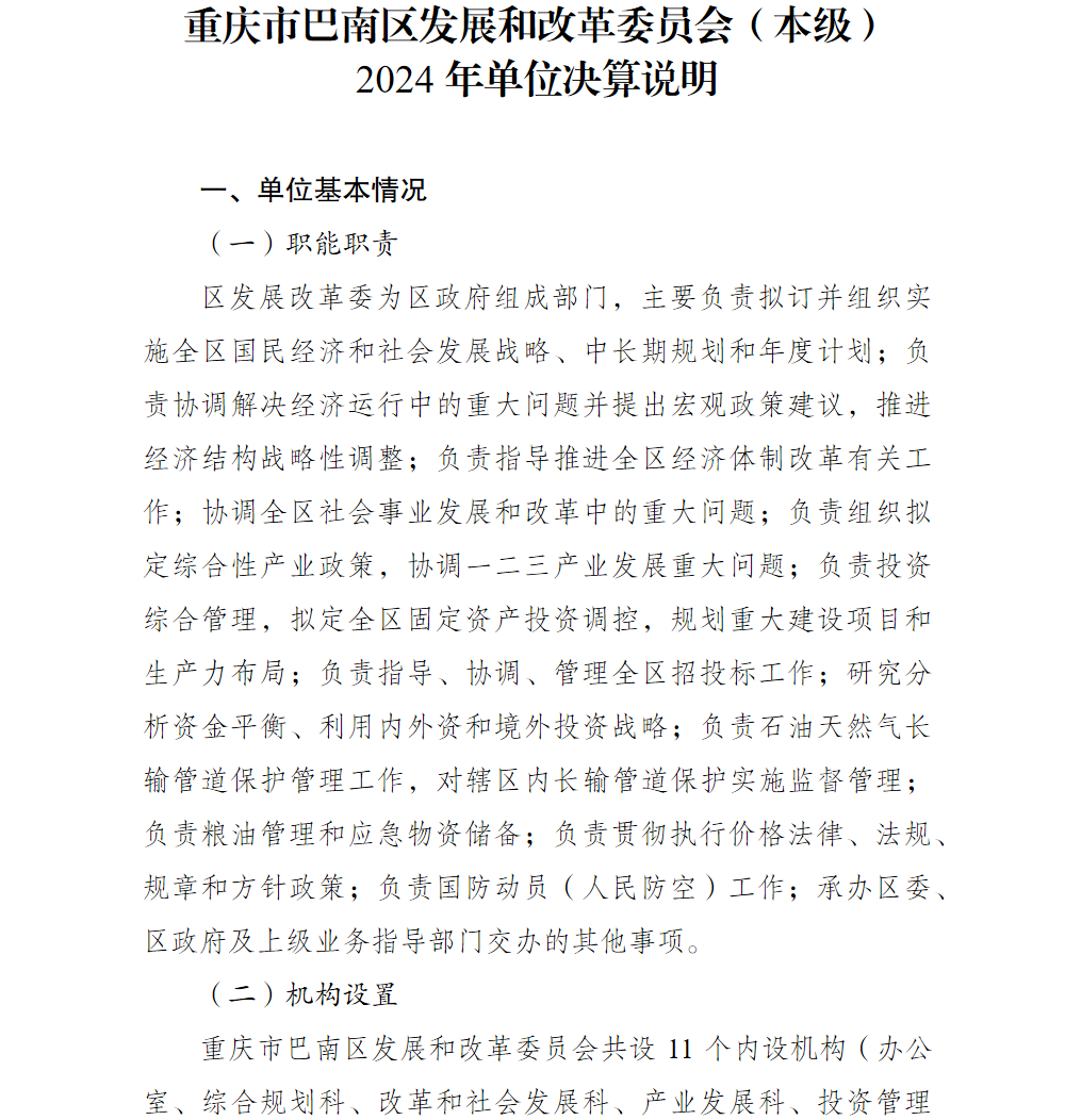 重庆市巴南区发展和改革委员会(本级)2024年单位决算说明