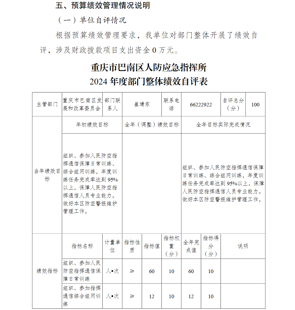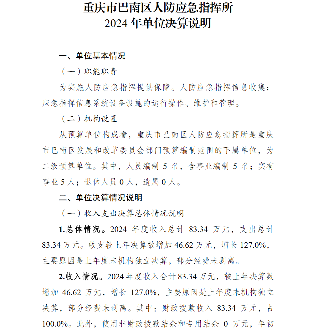 重庆市巴南区人防应急指挥所2024年单位决算说明