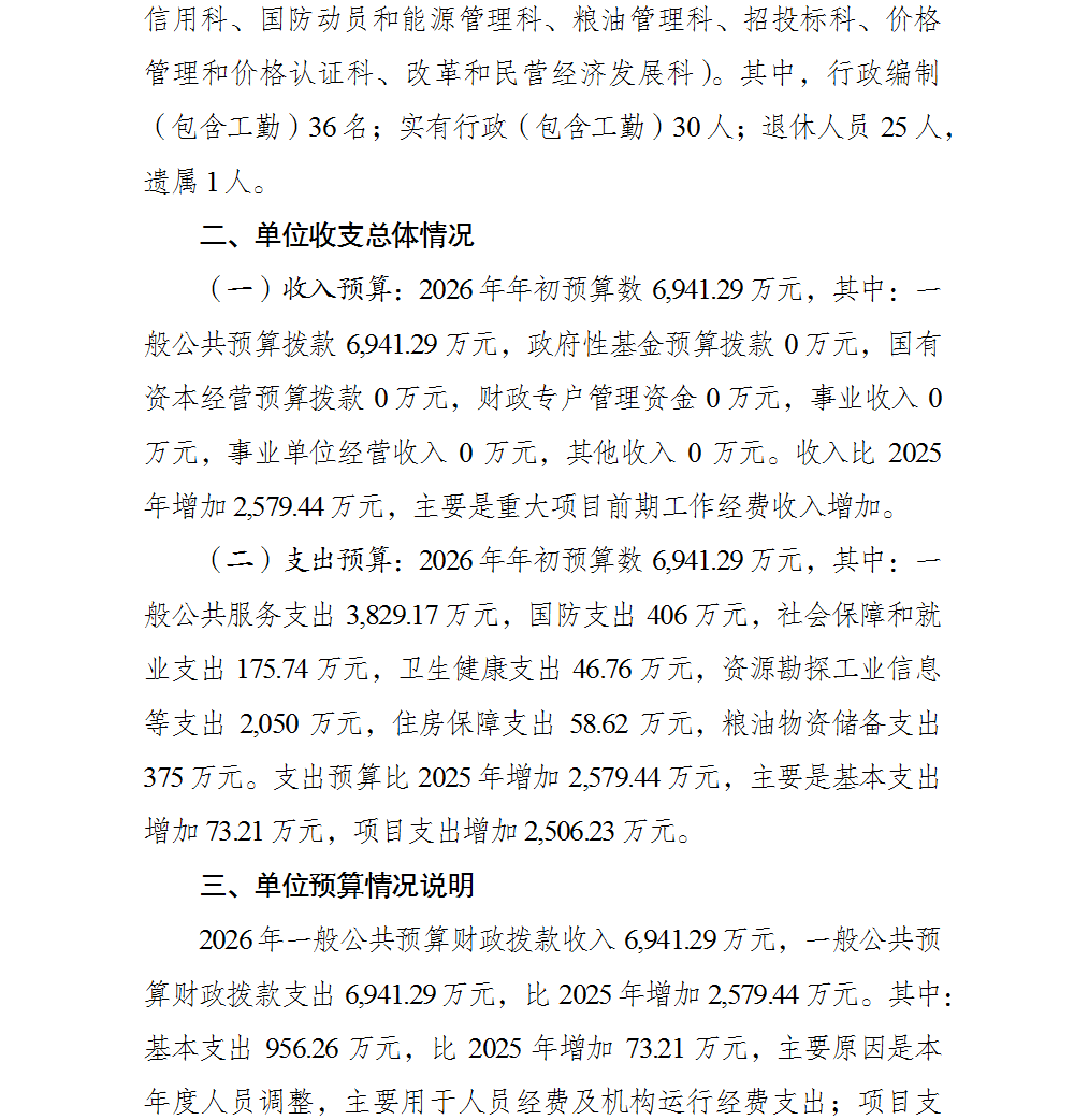 重庆市巴南区发展和改革委员会(本级)2026年单位预算情况说明
