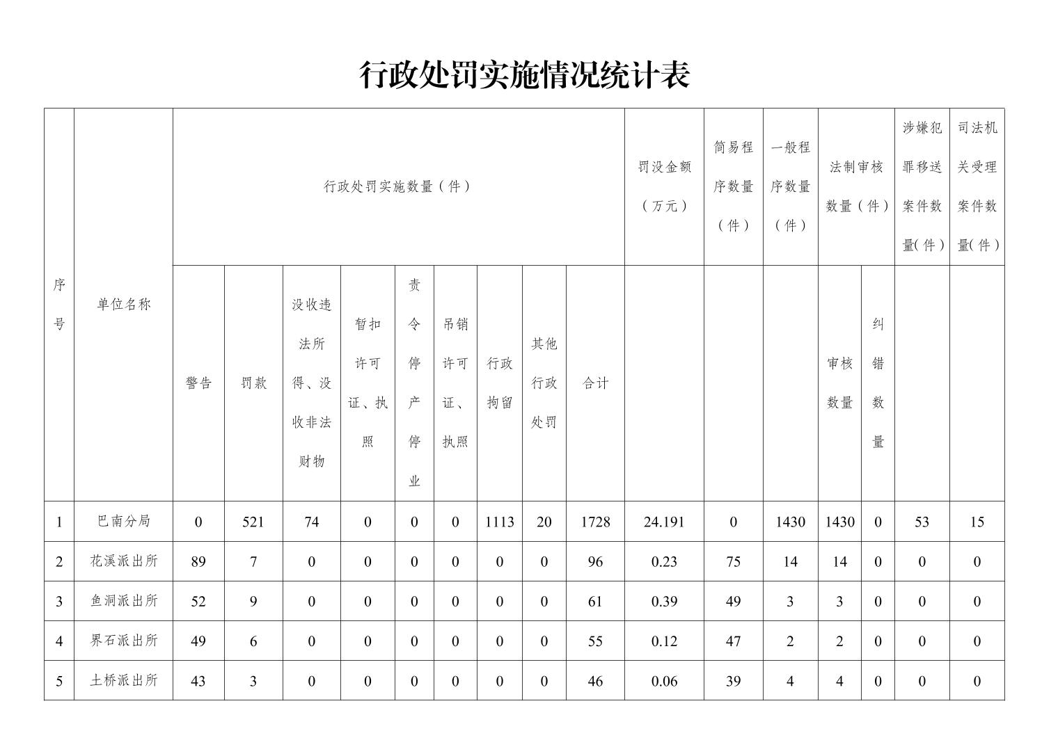 重庆市公安局巴南区分局2025年行政执法数据统计公示