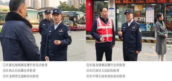 近期,区政府副区长,分局党委书记、局长赵吉春先后到惠民场镇烟花爆竹售卖点、接龙镇烟花爆竹仓库、鸡公台民爆仓库、巴南区人民医院、龙洲湾交通枢纽站、中国石油鱼洞加油站,督导检查节前安全生产工作。