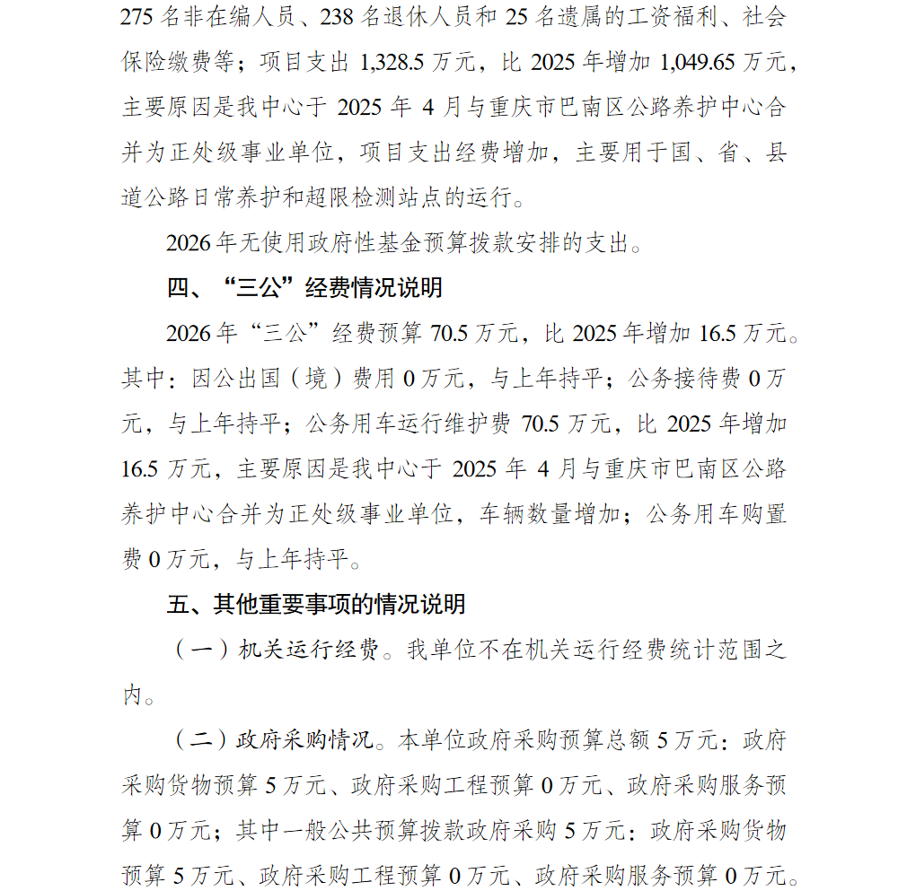 重庆市巴南区公路事务中心2026年单位预算情况说明