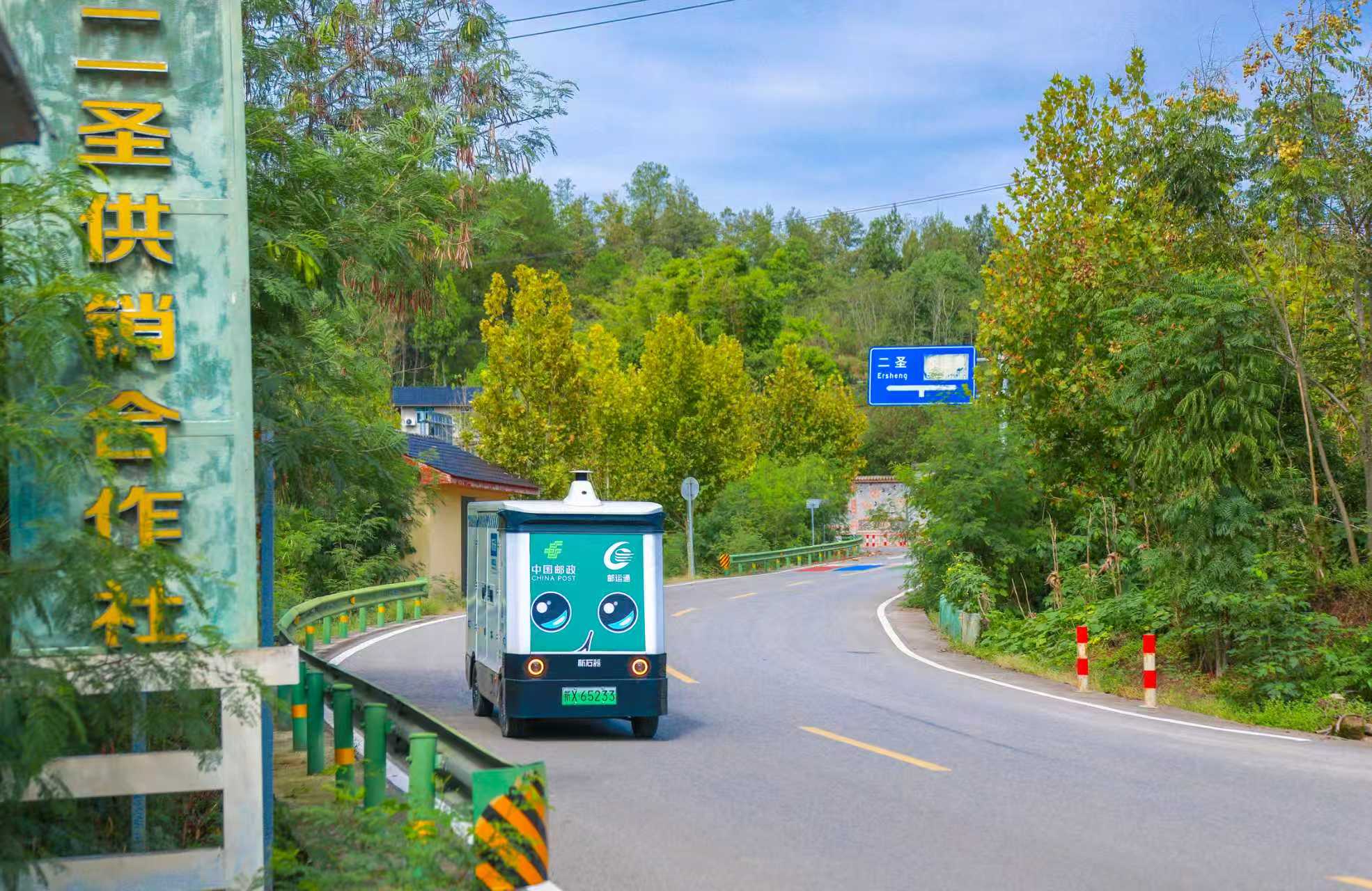 重庆中心城区首条“邮运通”乡镇无人 快递车邮快线路在巴南区正式运行