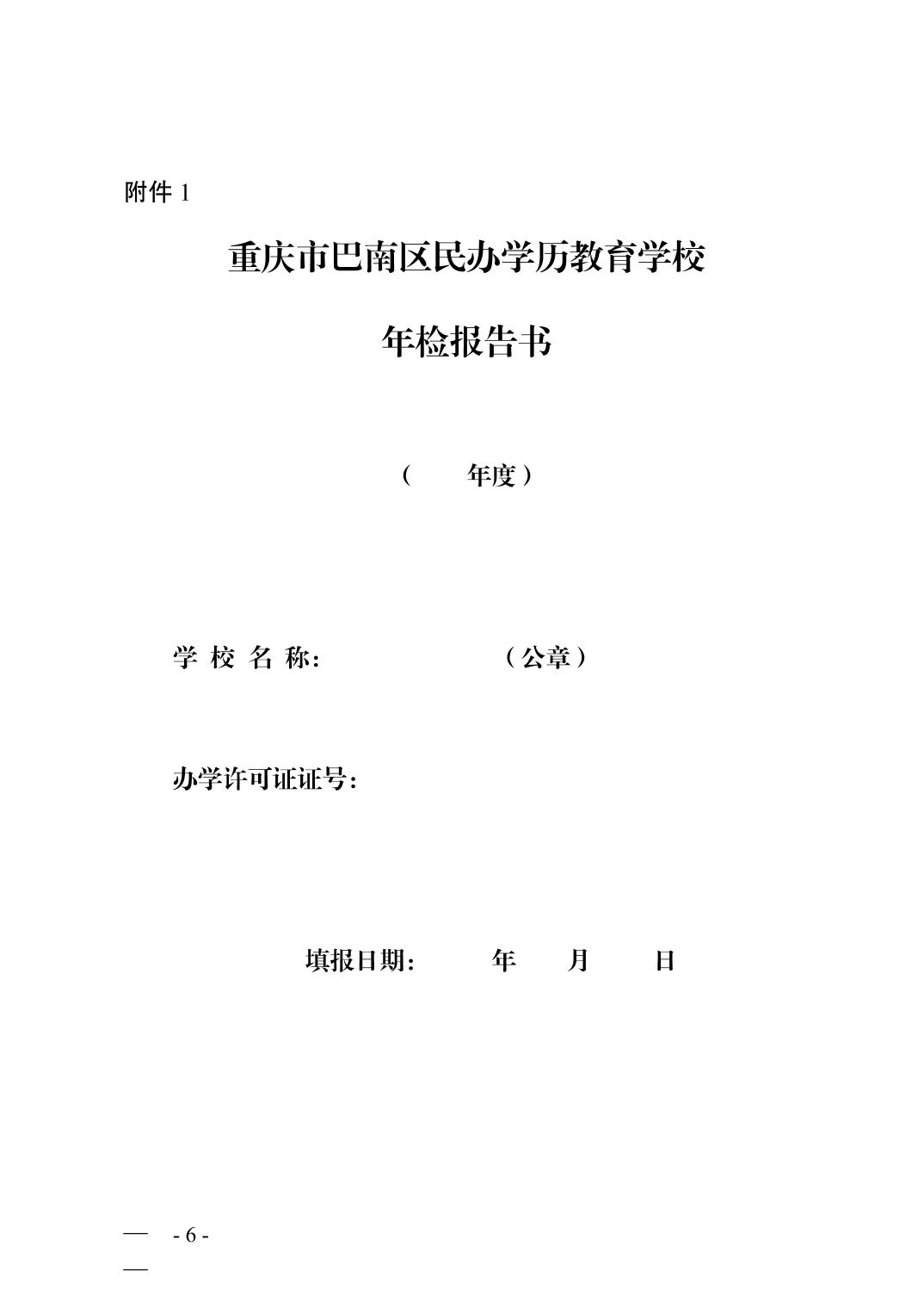 附件:1.重庆市巴南区民办学历教育学校年检报告书