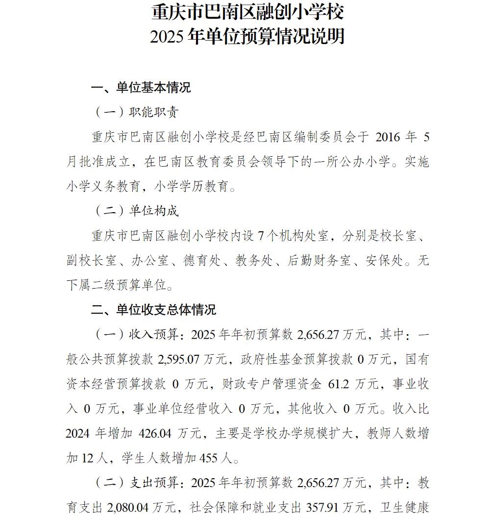重庆市巴南区融创小学校2025年单位预算情况说明