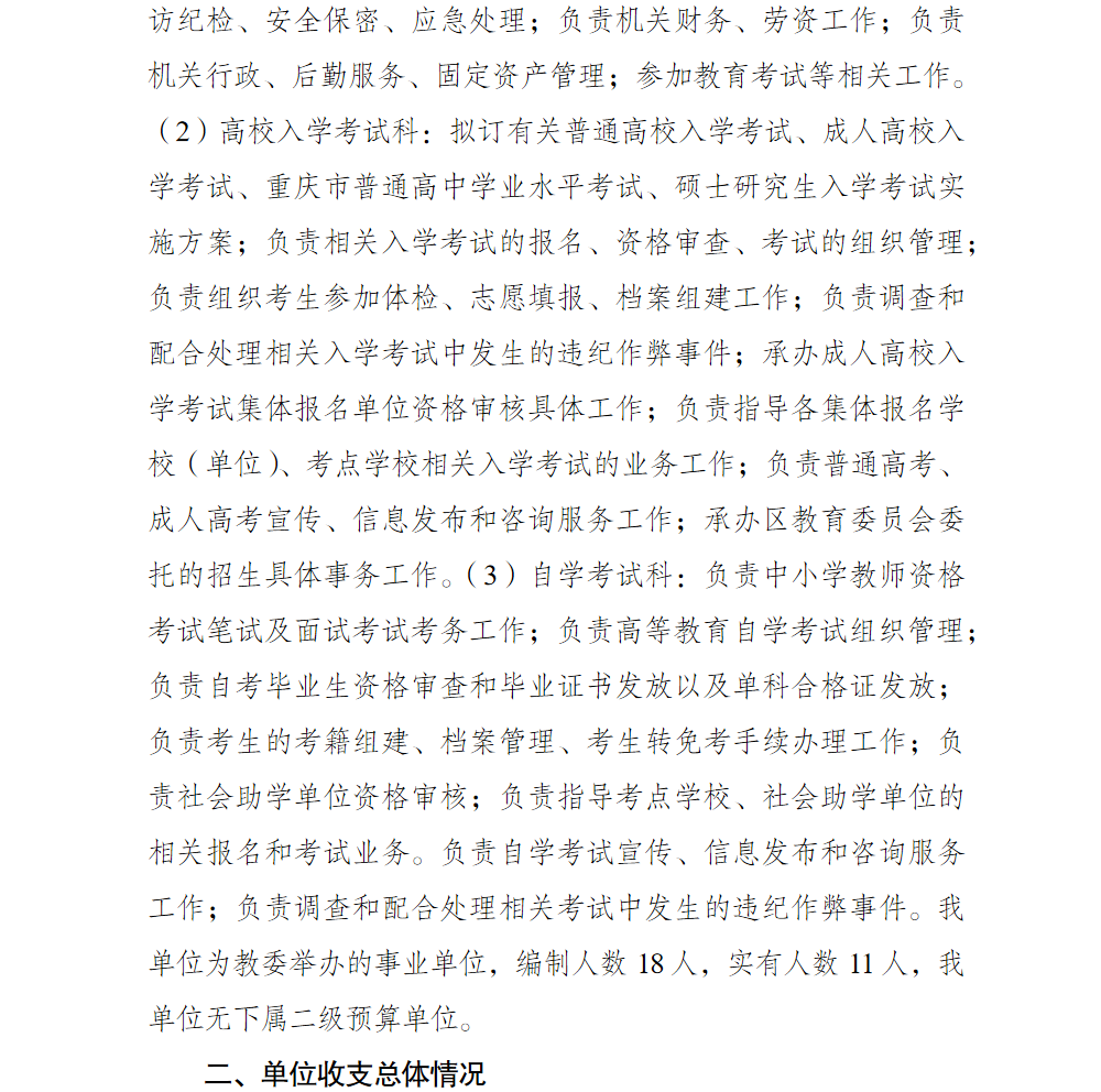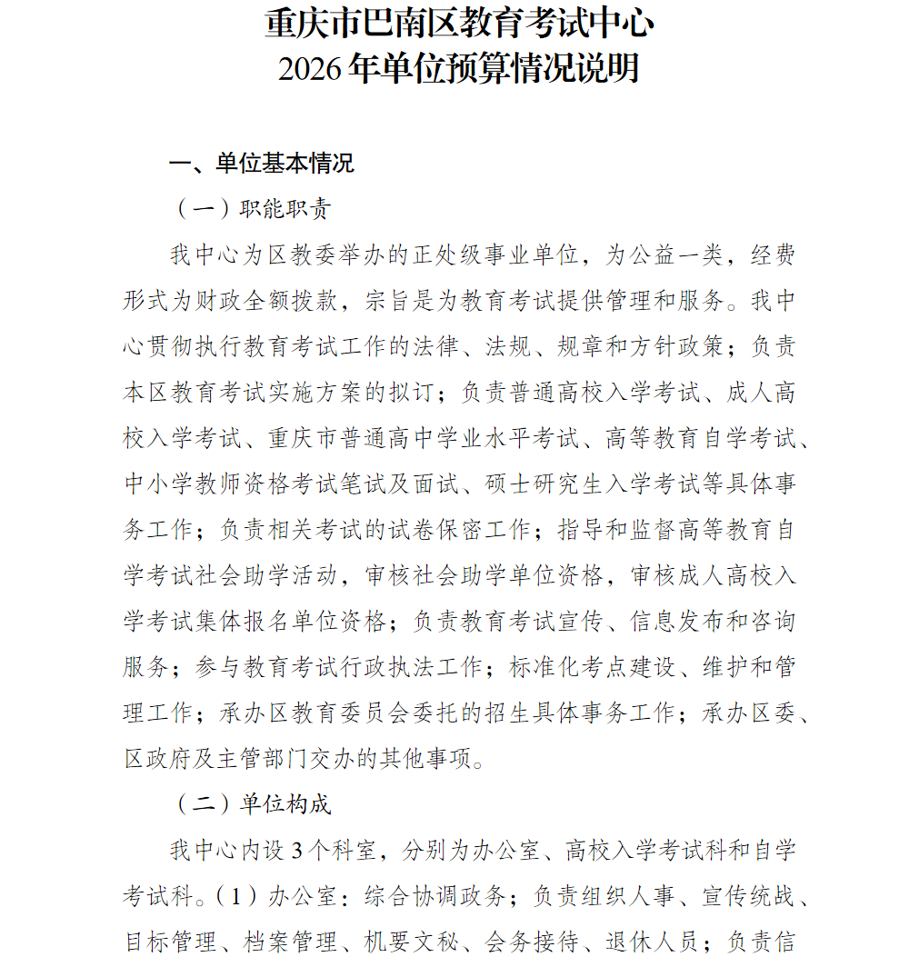 重庆市巴南区教育考试中心2026年单位预算情况说明