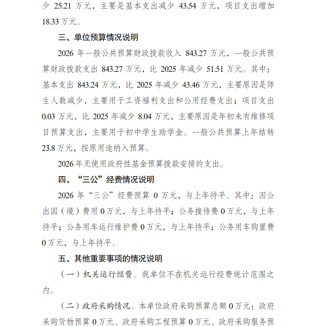 重庆市巴南区石滩镇学校2026年单位预算情况说明