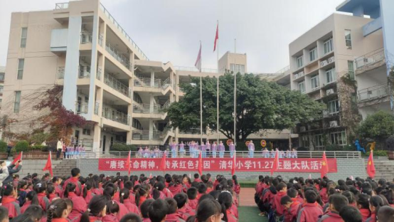 南泉革命烈士陵园内,珠江城小学、星澜汇小学、融汇二小等学校的党团队员代表,通过敬献花圈、重温誓词、微党课、红色宣讲等活动,追思先烈、厚植情怀,让“行走的思政课”落地见效。巴南小学、松花江小学、清华小学等学校通过主题升旗仪式,号召全体师生铭记历史、珍惜当下。鱼洞二小各校区联动开展系列活动,以主题升旗仪式开篇,随后分赴工农坡烈士墓、江东顺等烈士之墓祭扫,同步为一年级学生举行入队仪式,将红色教育融入多样实践,让师生接受深刻精神洗礼。