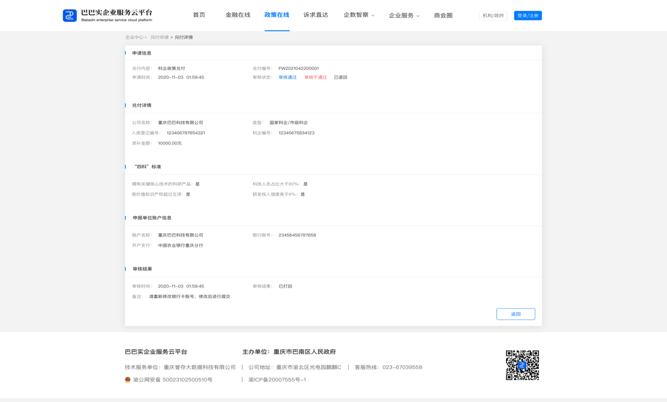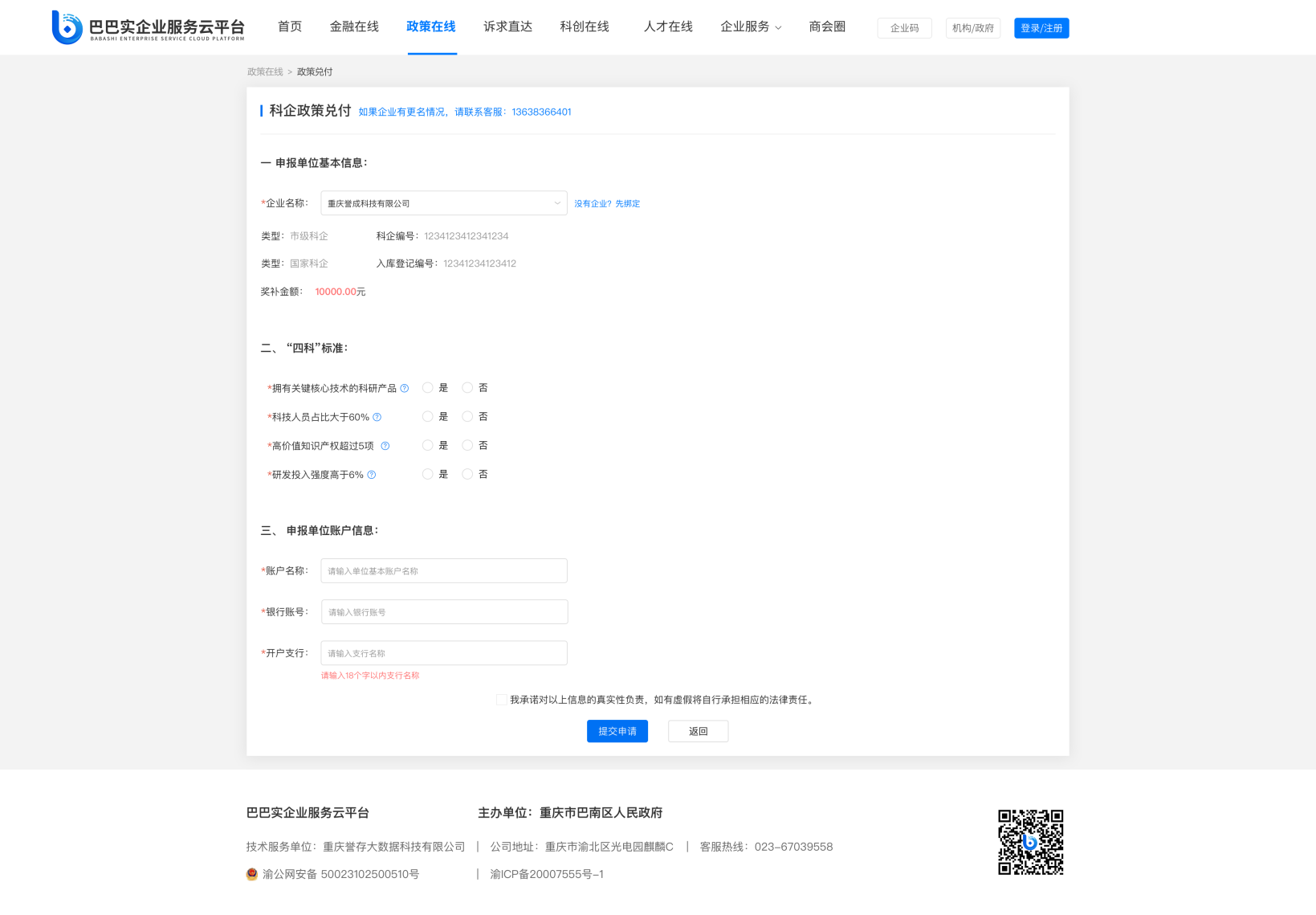 本次科技创新相关奖补资金采取“线上申报兑付”方式实施,各有关科技型企业需前往“巴巴实企业服务云平台”进行申报。