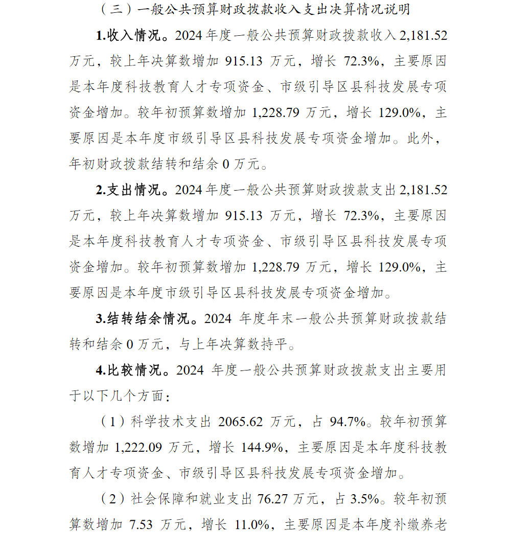 重庆市巴南区科学技术局(本级)2024年单位决算说明