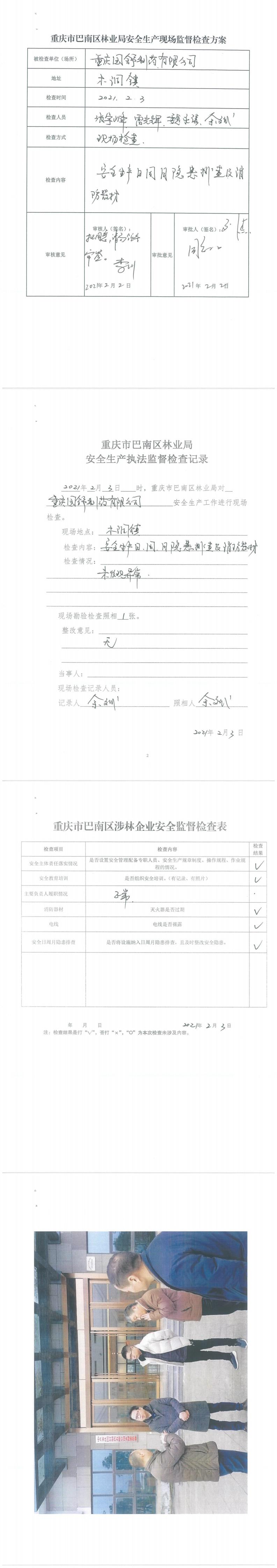 区林业局2021年2月3日安全生产现场监督检查