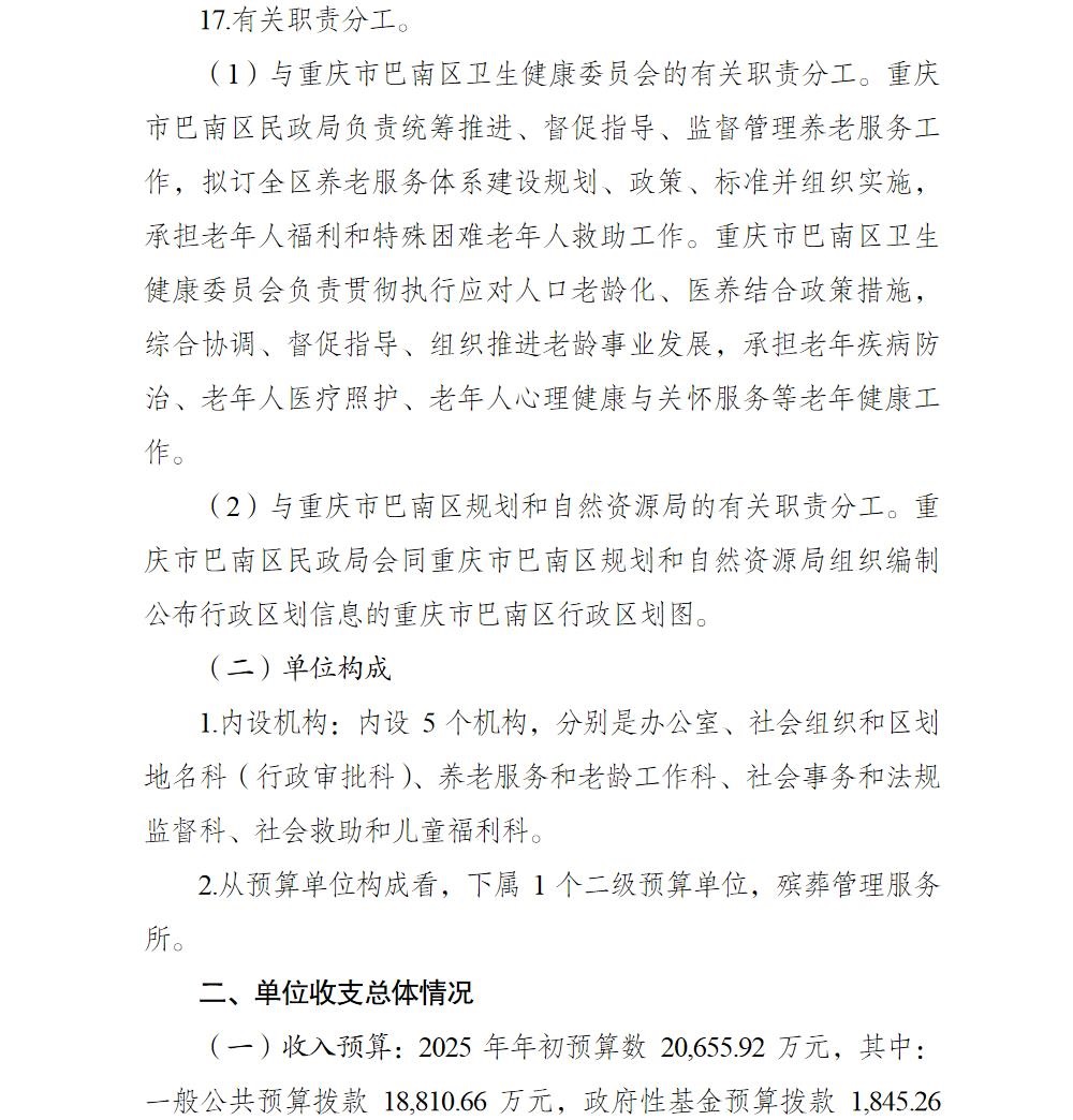 重庆市巴南区民政局(本级)2025年单位预算情况说明及附表