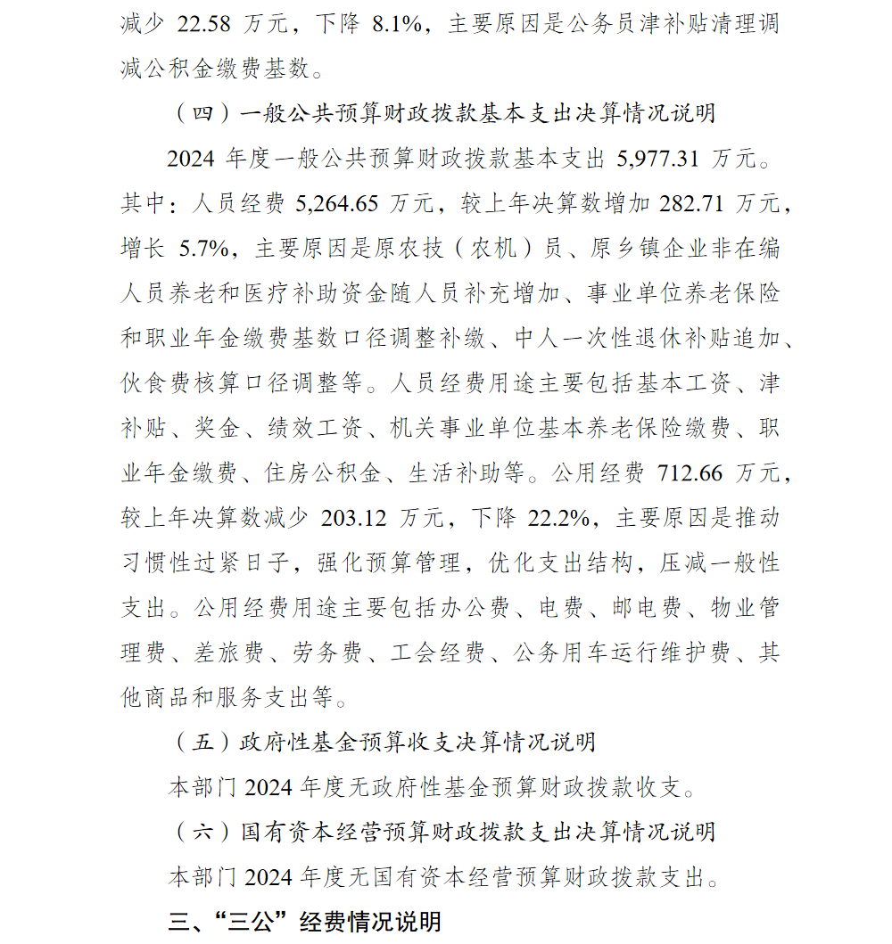 重庆市巴南区农业农村委员会2024年度部门决算说明