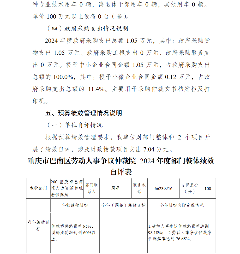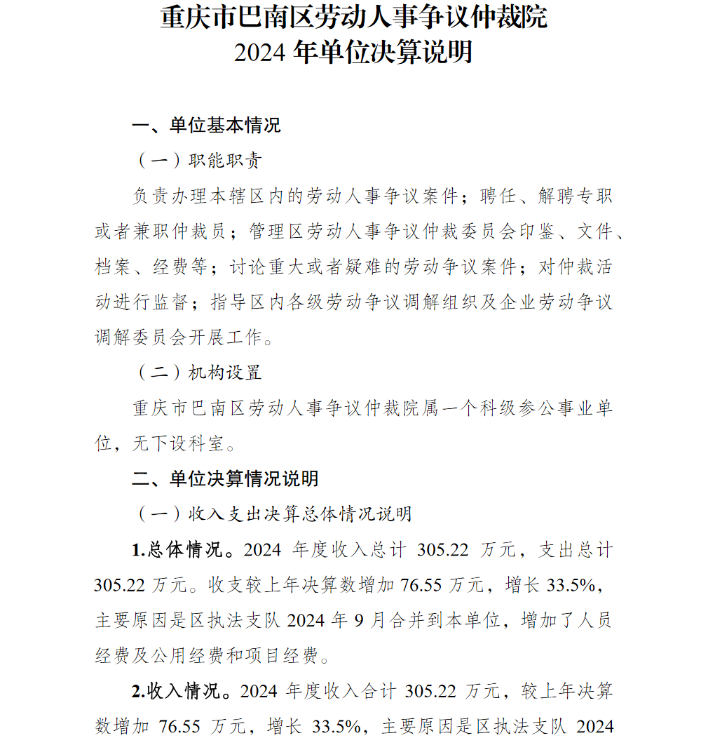 重庆市巴南区劳动人事争议仲裁院2024年单位决算说明