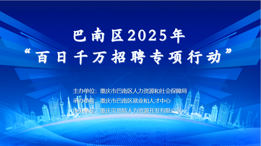 发布日期:2025-09-25“岗”好有我 “职”等你来||巴南区2025年“百日千万招聘专项行动”线上招聘...