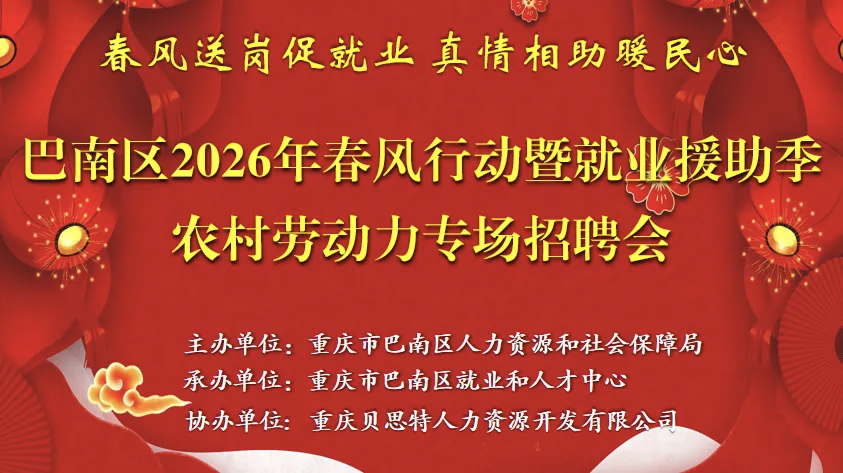 【招聘会预告】巴南区2026年春风行动暨就业援助季农村劳动力专场招聘会,职...