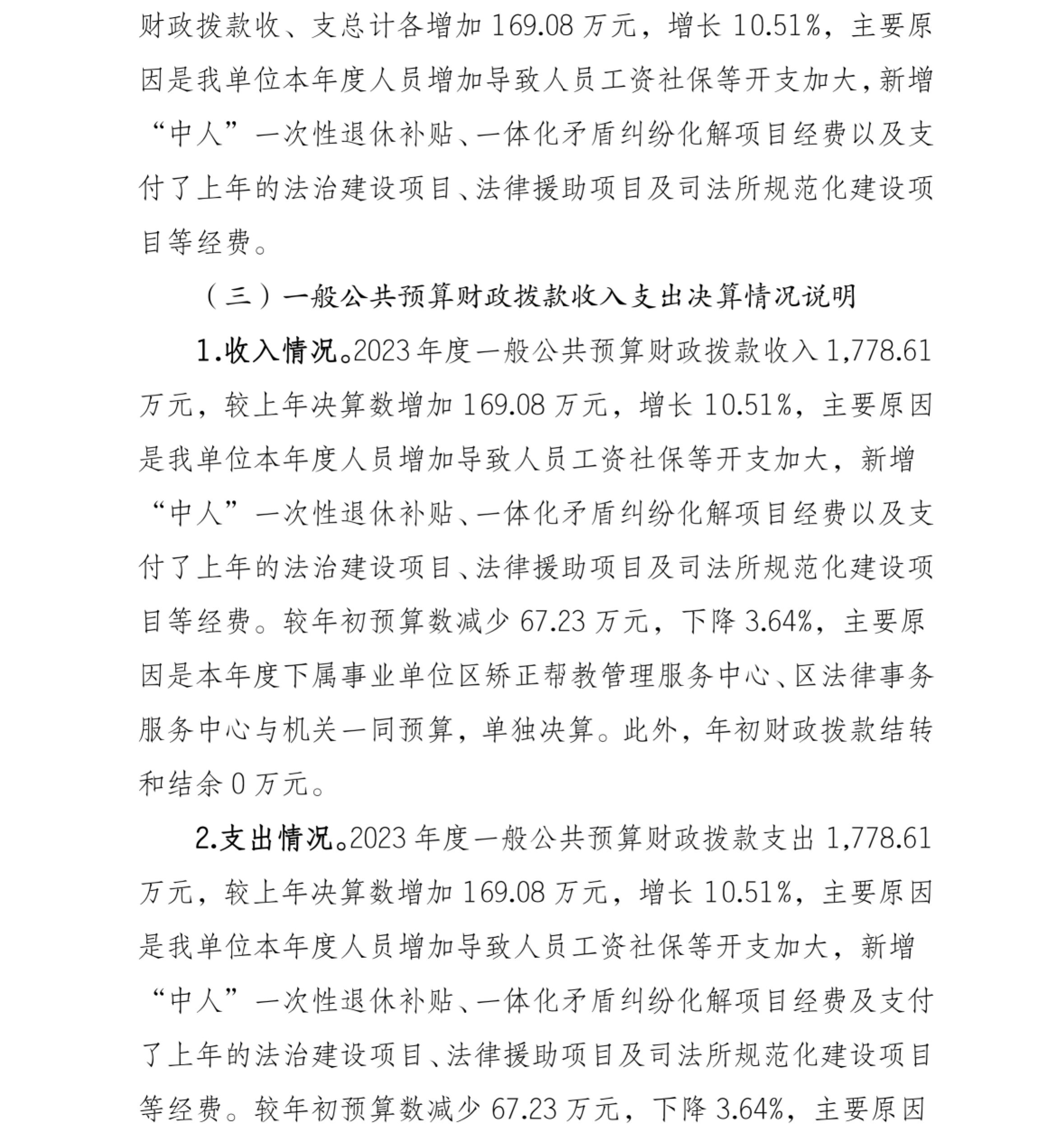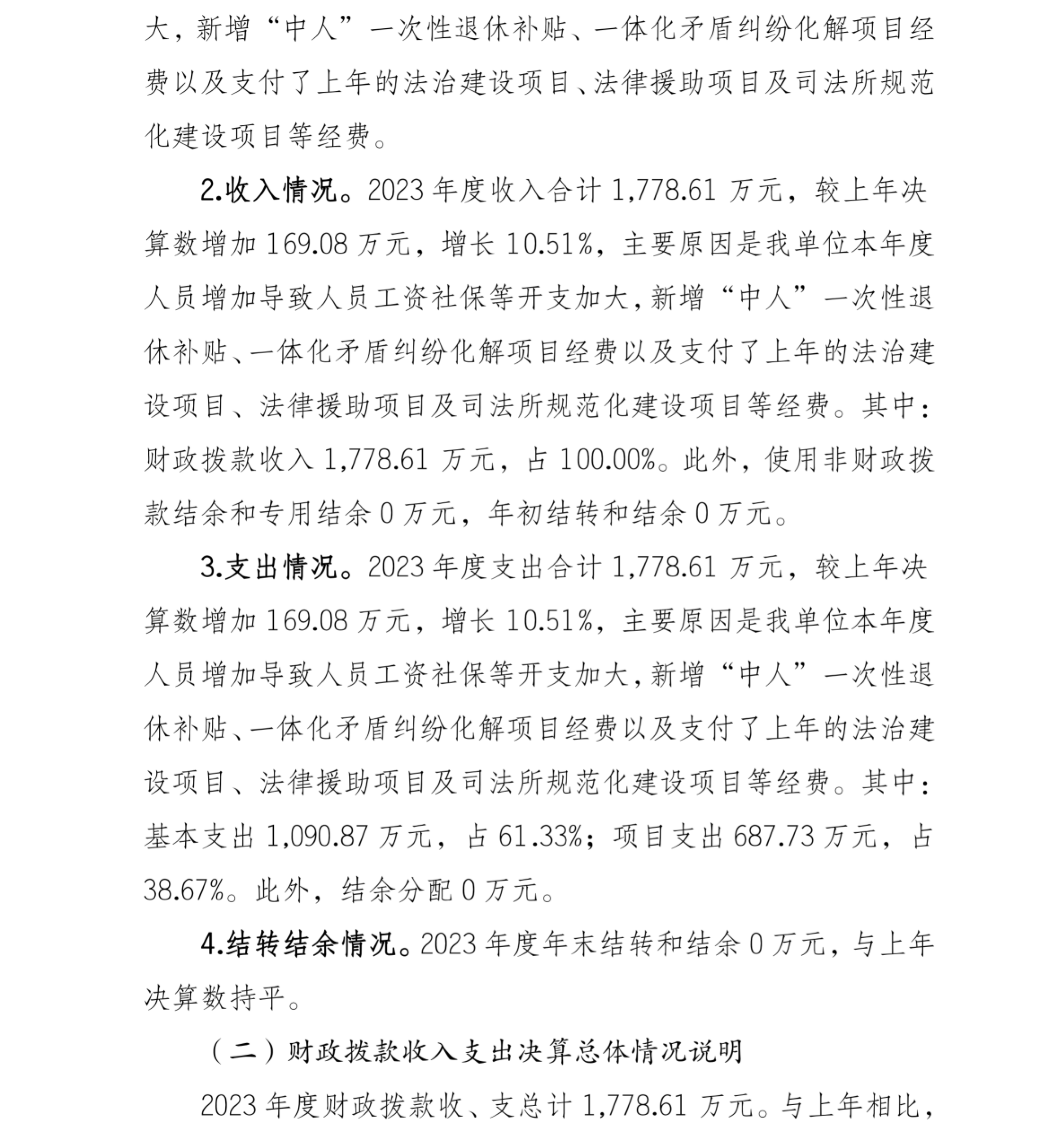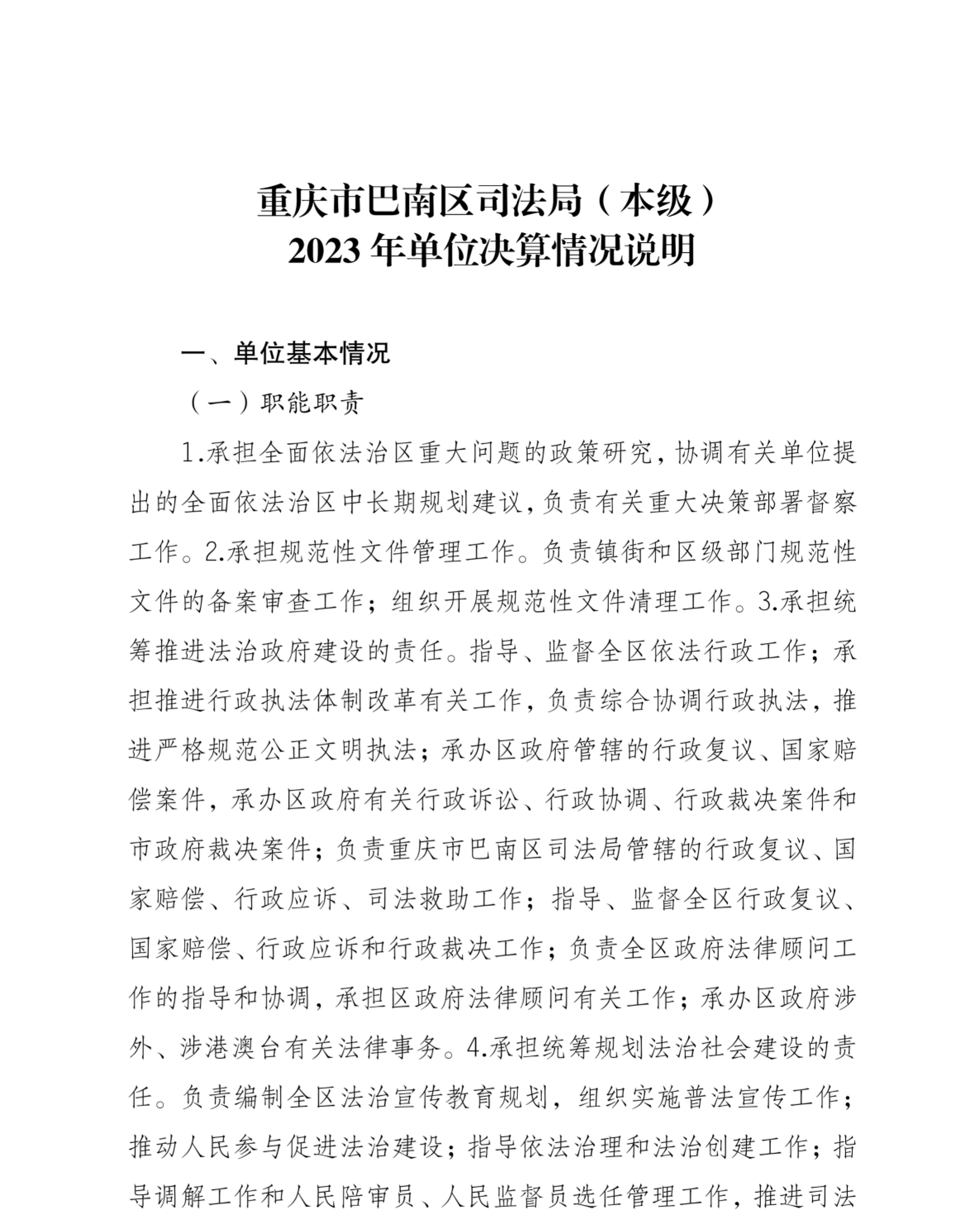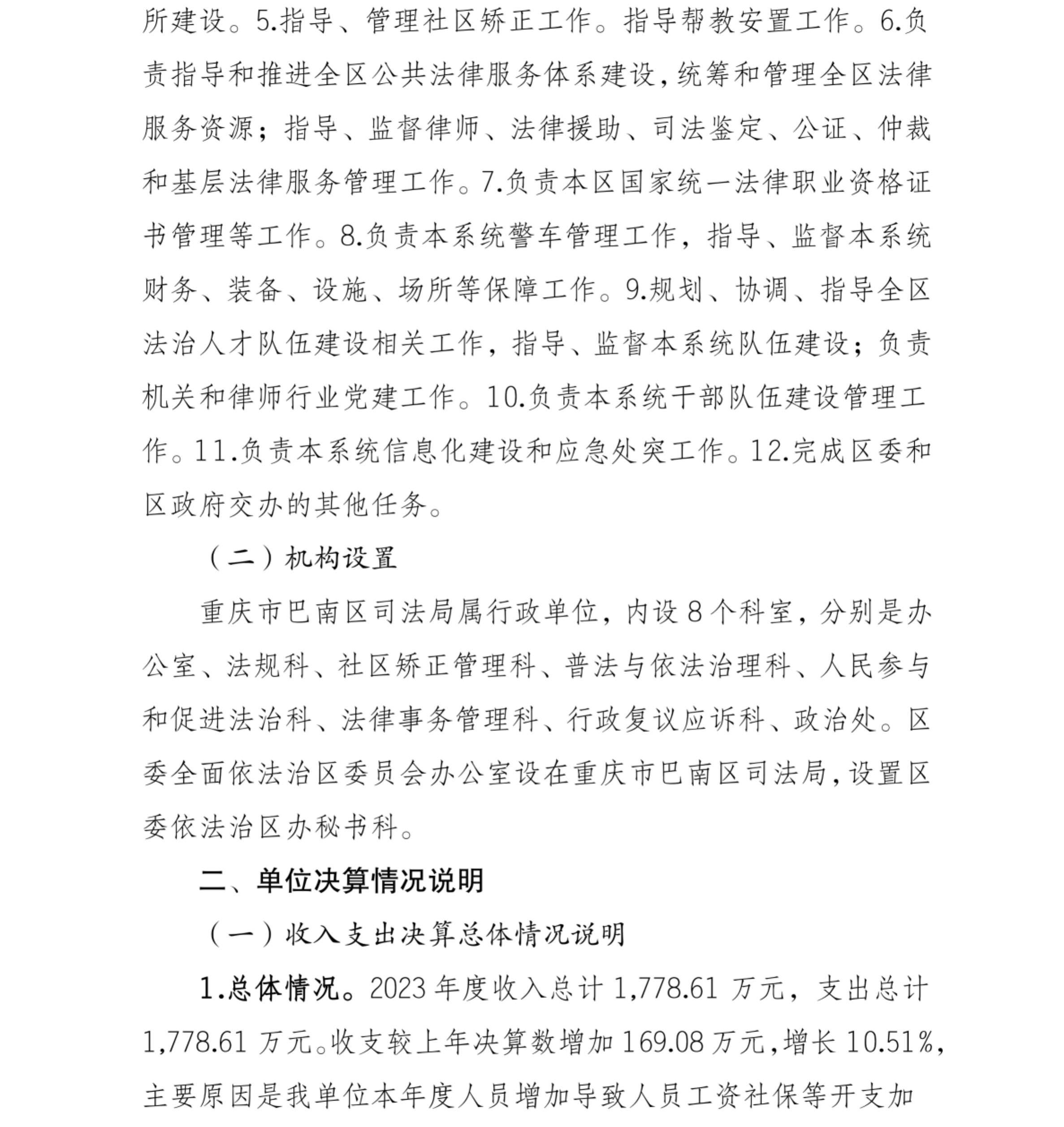 重庆市巴南区司法局(本级)2023年单位决算情况说明