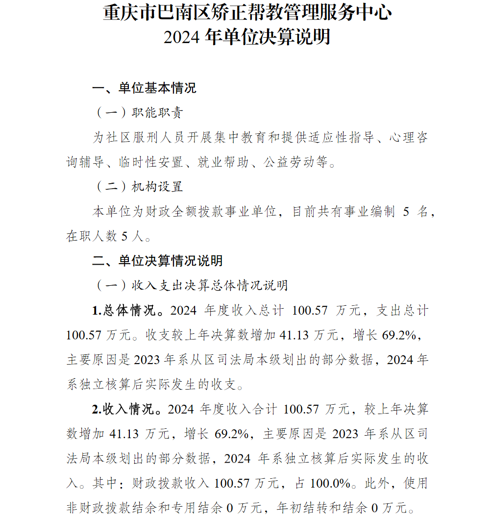 重庆市巴南区矫正帮教管理服务中心2024年单位决算说明