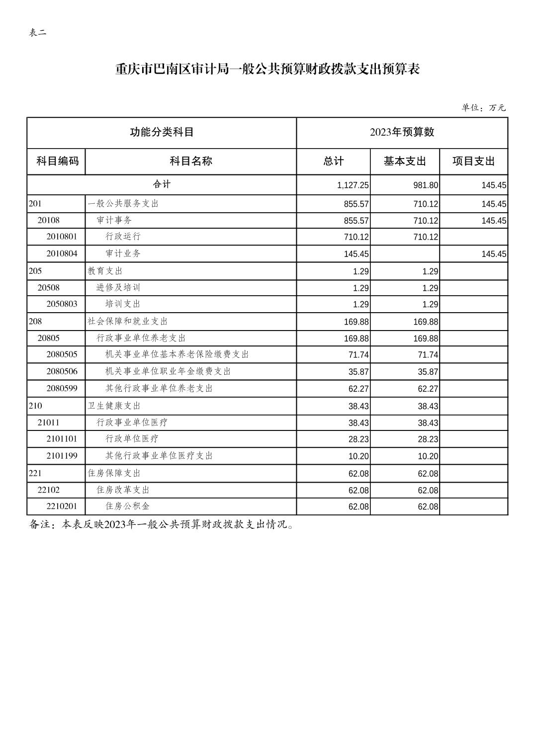 重庆市巴南区审计局2023年单位预算情况说明