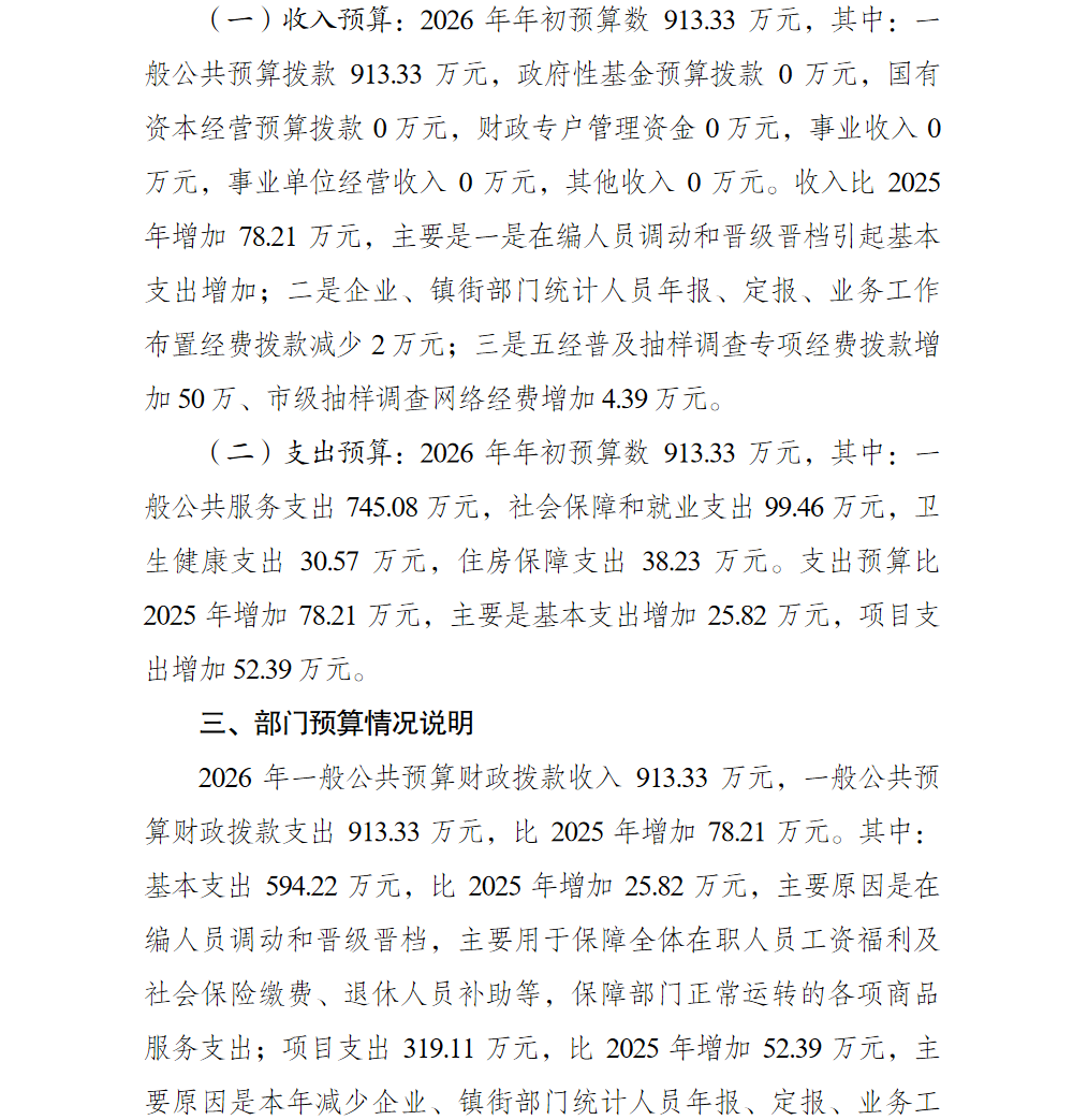 重庆市巴南区统计局2026年部门预算情况说明