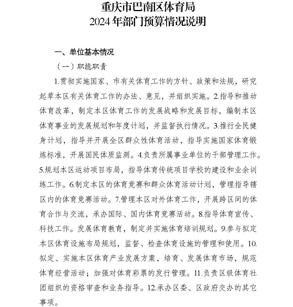 重庆市巴南区体育局2024年部门预算情况说明(汇总级和本级)