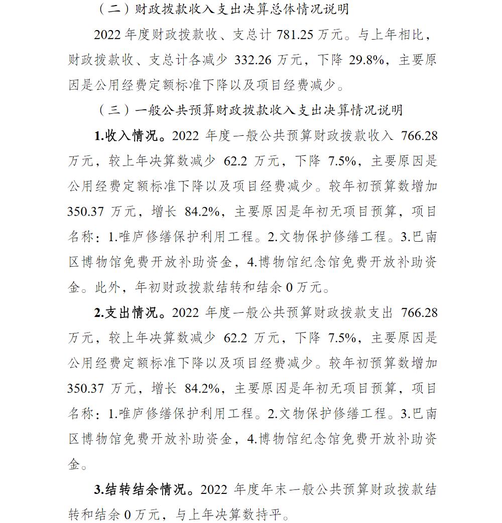 重庆市巴南区文化遗产保护中心2022年部门决算说明