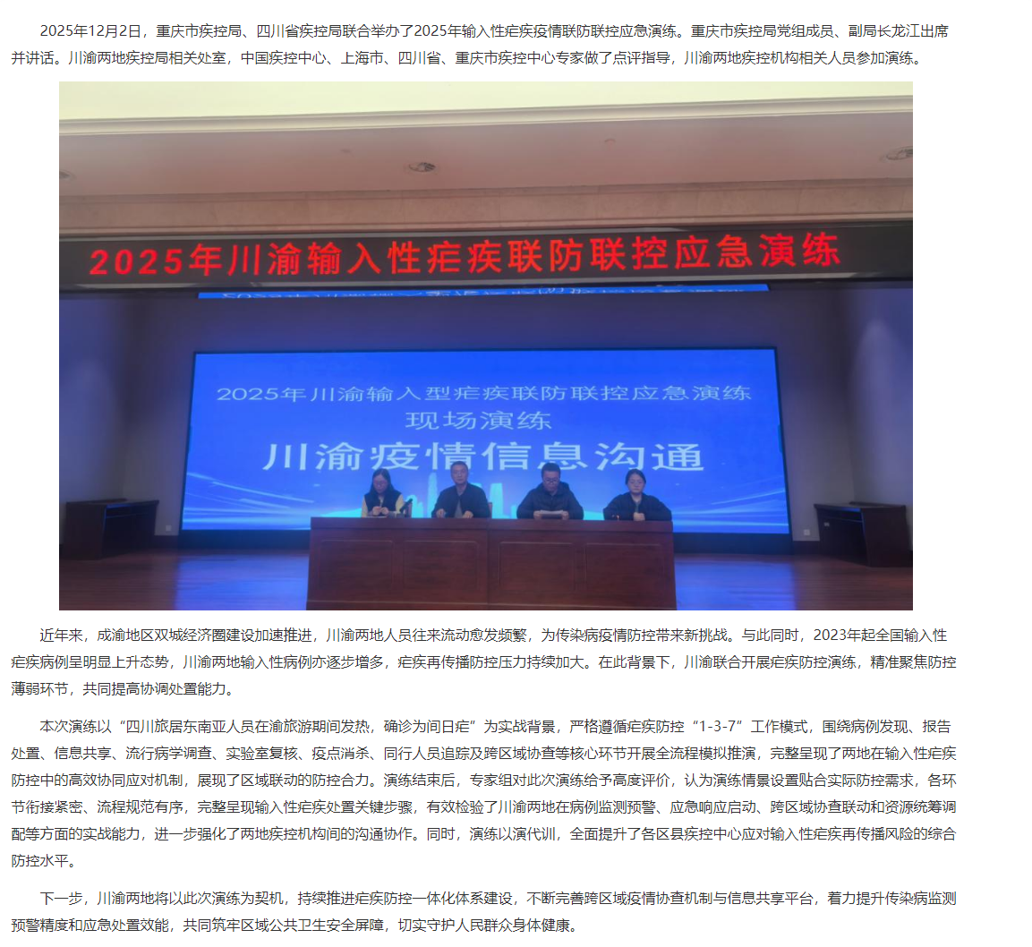 深化协作练精兵 携手共筑健康圈——2025年川渝输入性疟疾联防联控应急演练成功举行
