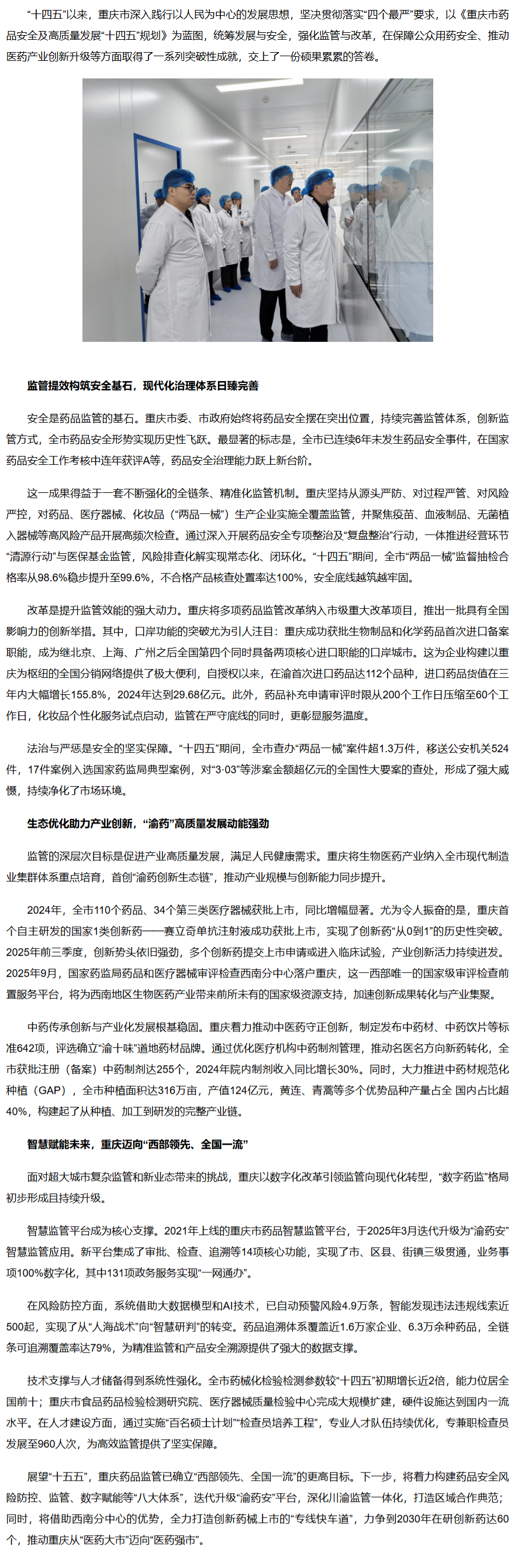 以安全驱动产业创新 重庆“十四五”药品监管迈向现代化