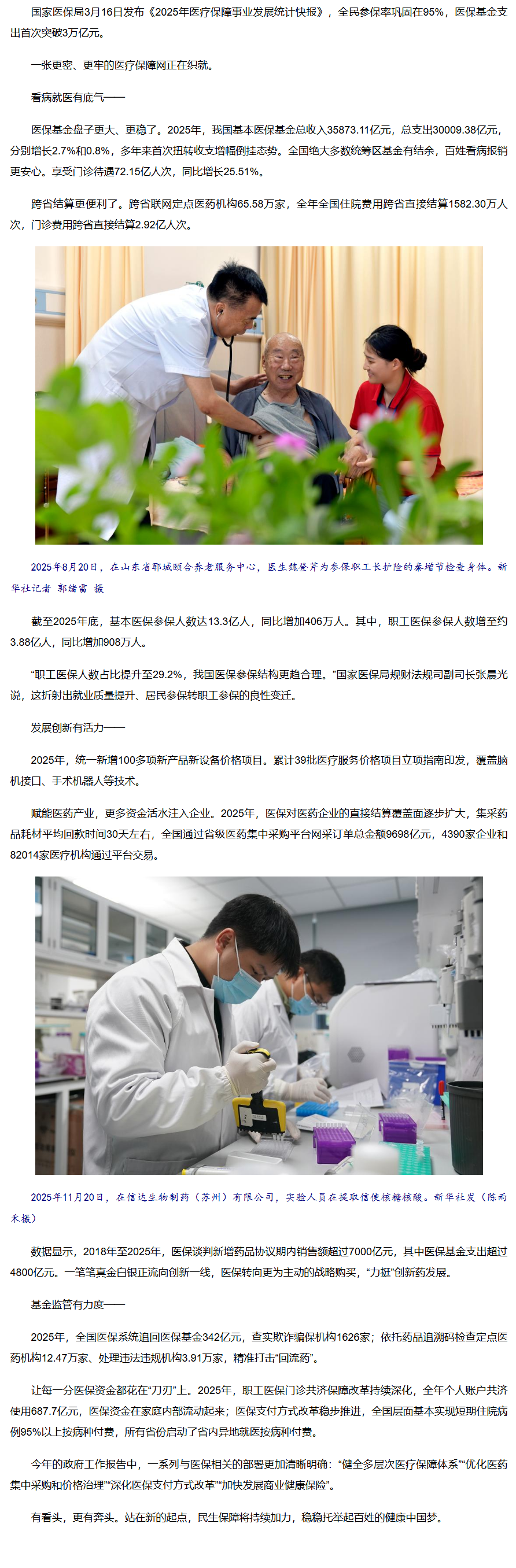 新华鲜报丨首超3万亿元!2025年医保“家底”更厚实