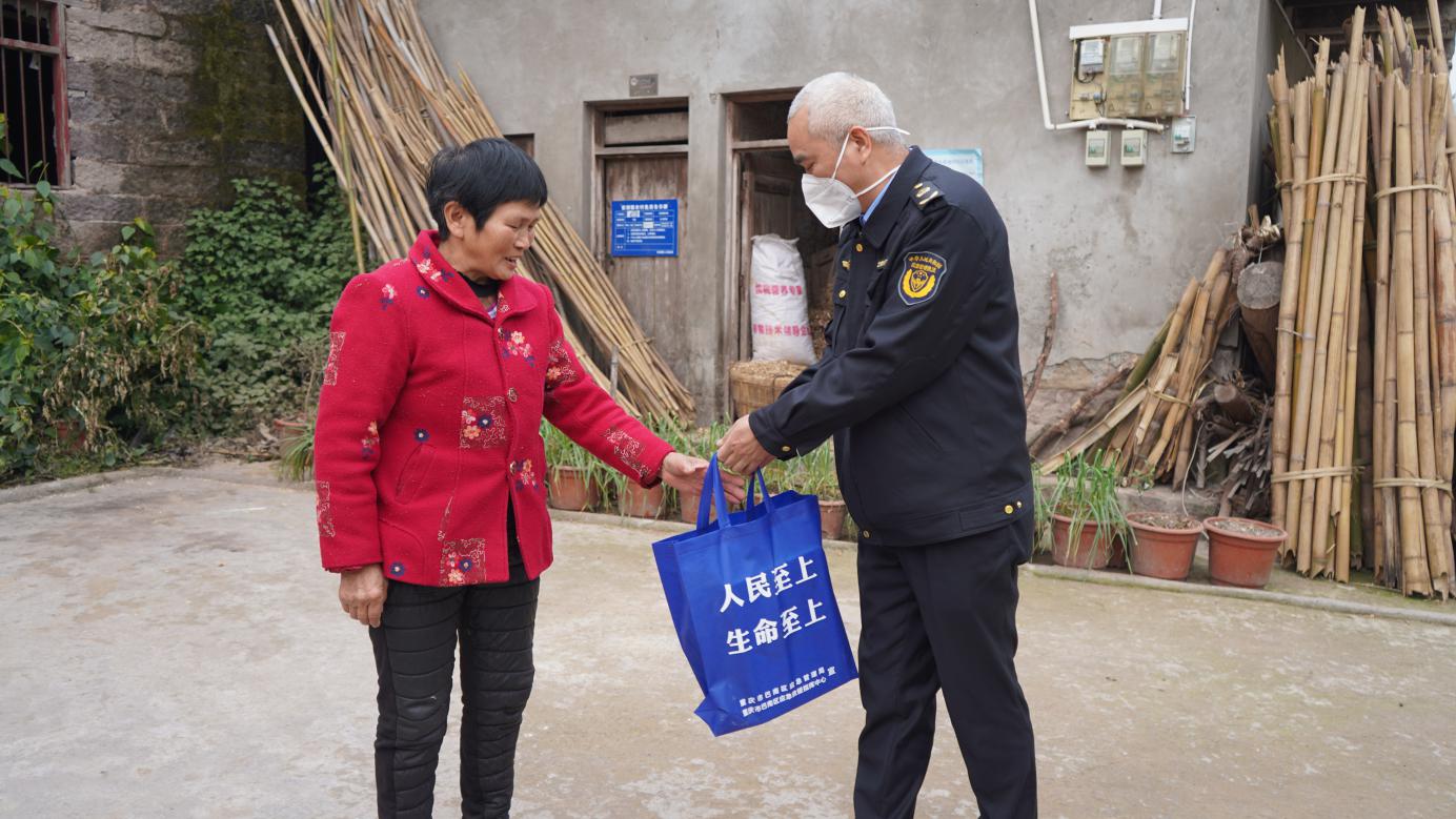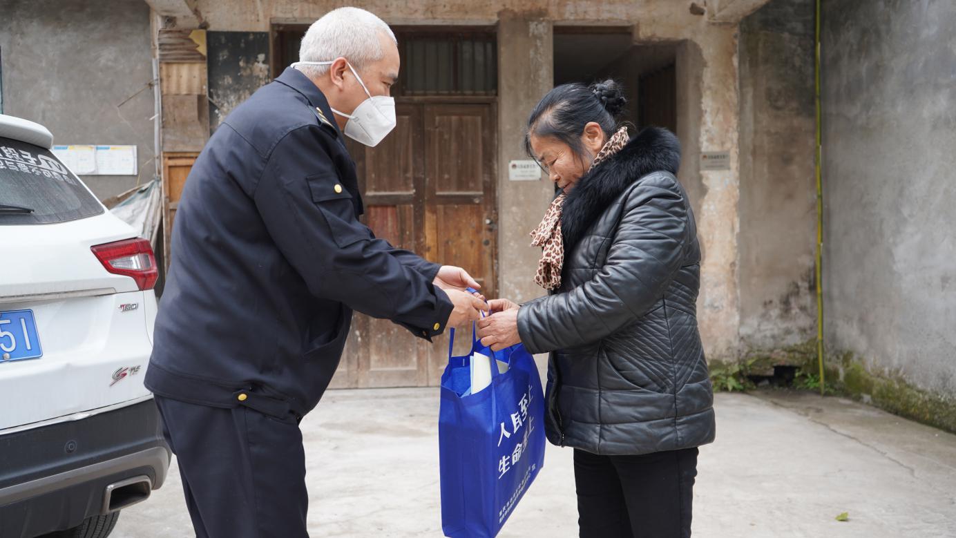 在村民文良芬家院坝,区应急局工作人员询问其是否有收到区里发放的救助金,并向其送上应急慰问包。文良芬告诉记者,去年因高温干旱,自己种的2亩玉米受损,造成了不小的经济损失,感谢政府下发的救助金,缓解了眼前的燃眉之急。
