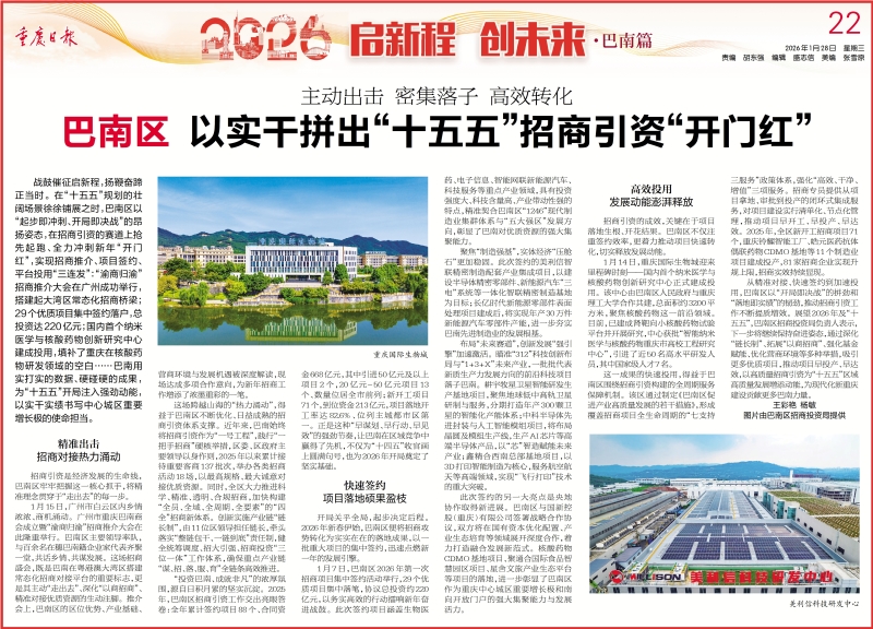 - 《重庆日报》巴南区以实干拼出“十五五”招商引资“开门红”2026-01-28