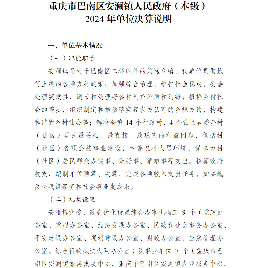 重庆市巴南区安澜镇人民政府(本级)2024年单位决算说明