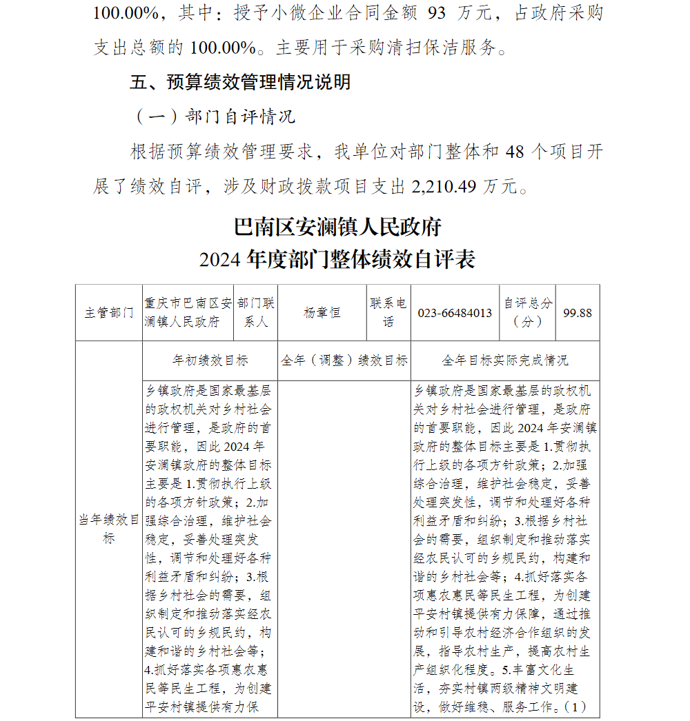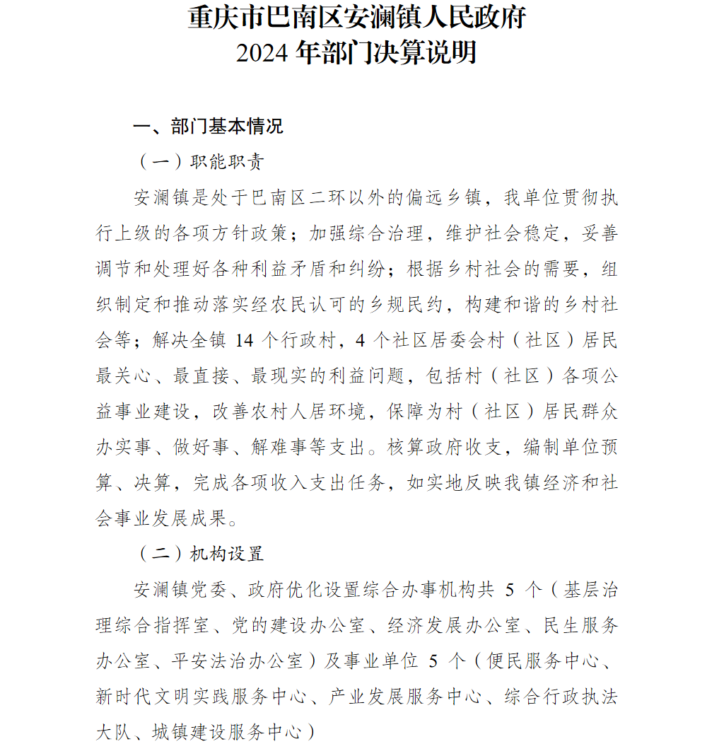 重庆市巴南区安澜镇人民政府2024年部门决算说明