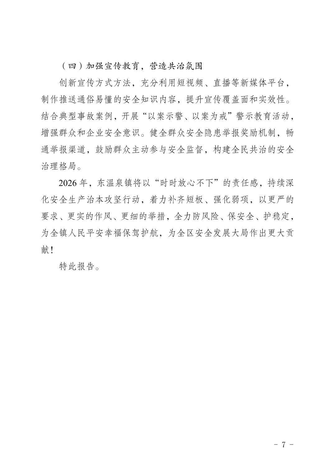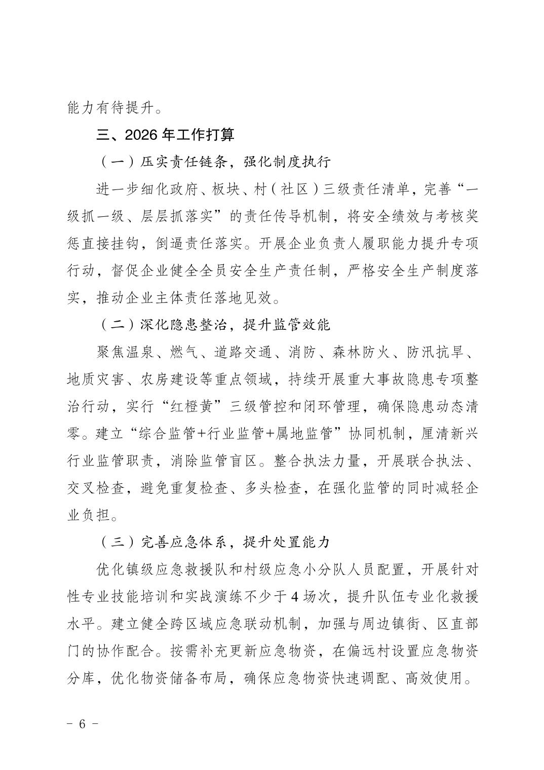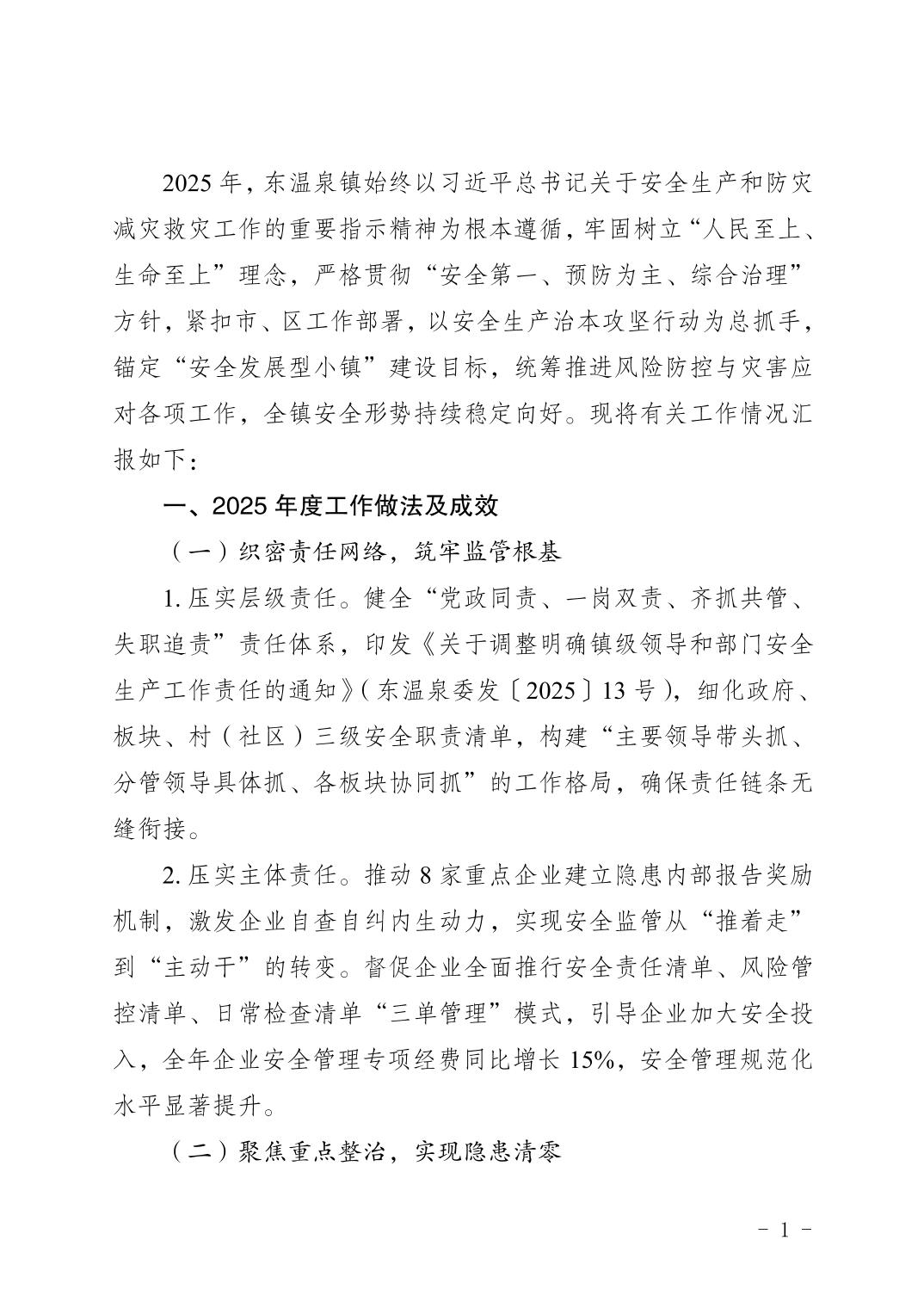 中共重庆市巴南区东温泉镇委员会重庆市巴南区东温泉镇人民政府关于2025年安全生产与防灾减灾救灾工作情况的报告