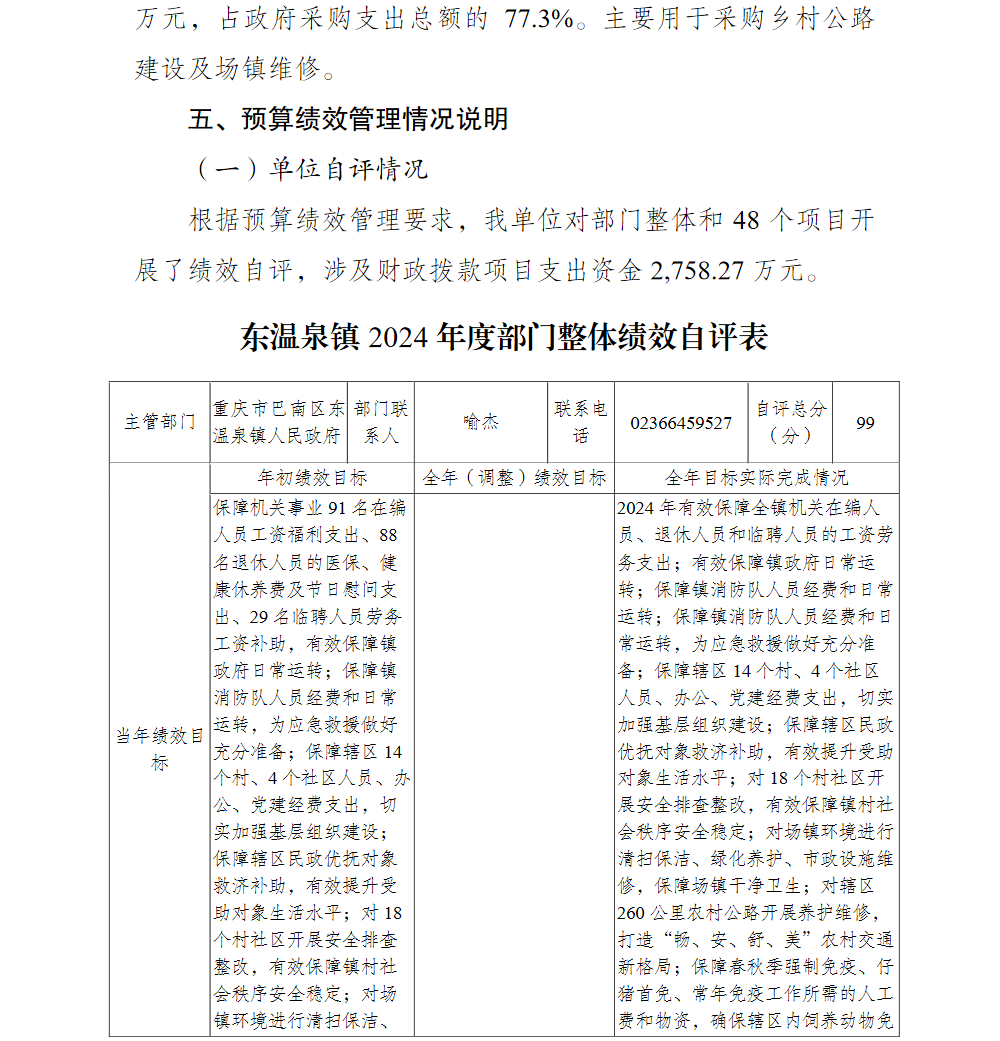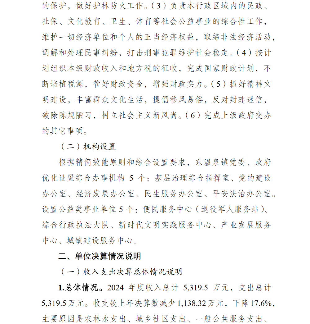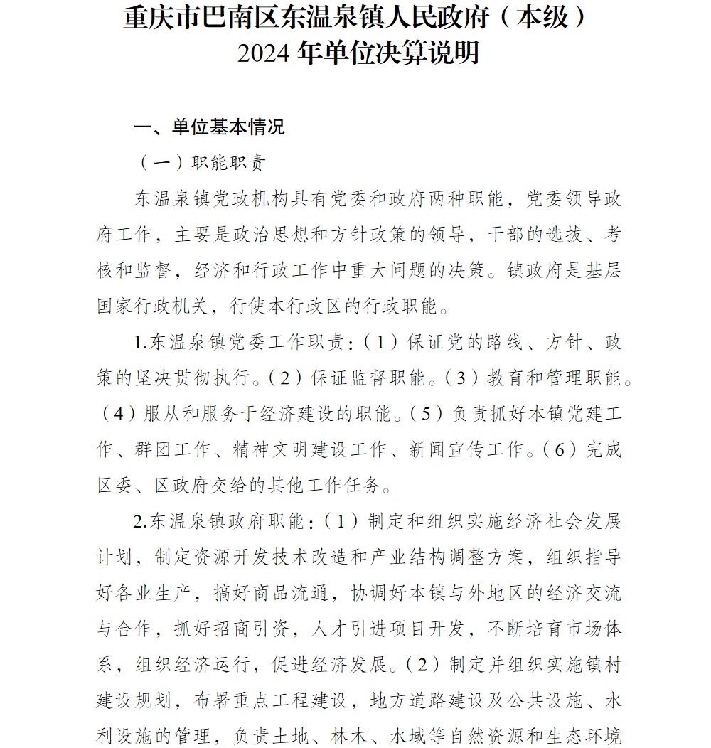 重庆市巴南区东温泉镇人民政府2024年单位决算情况说明