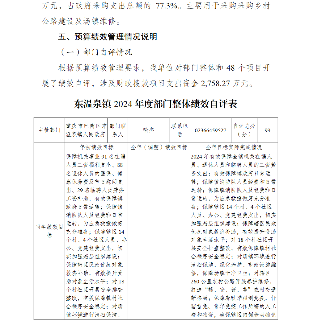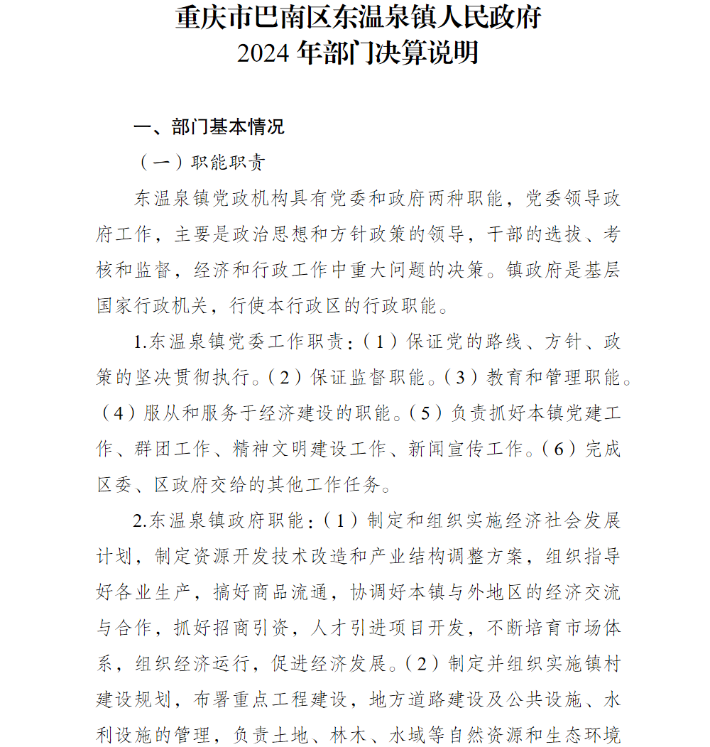重庆市巴南区东温泉镇人民政府2024年部门决算情况说明