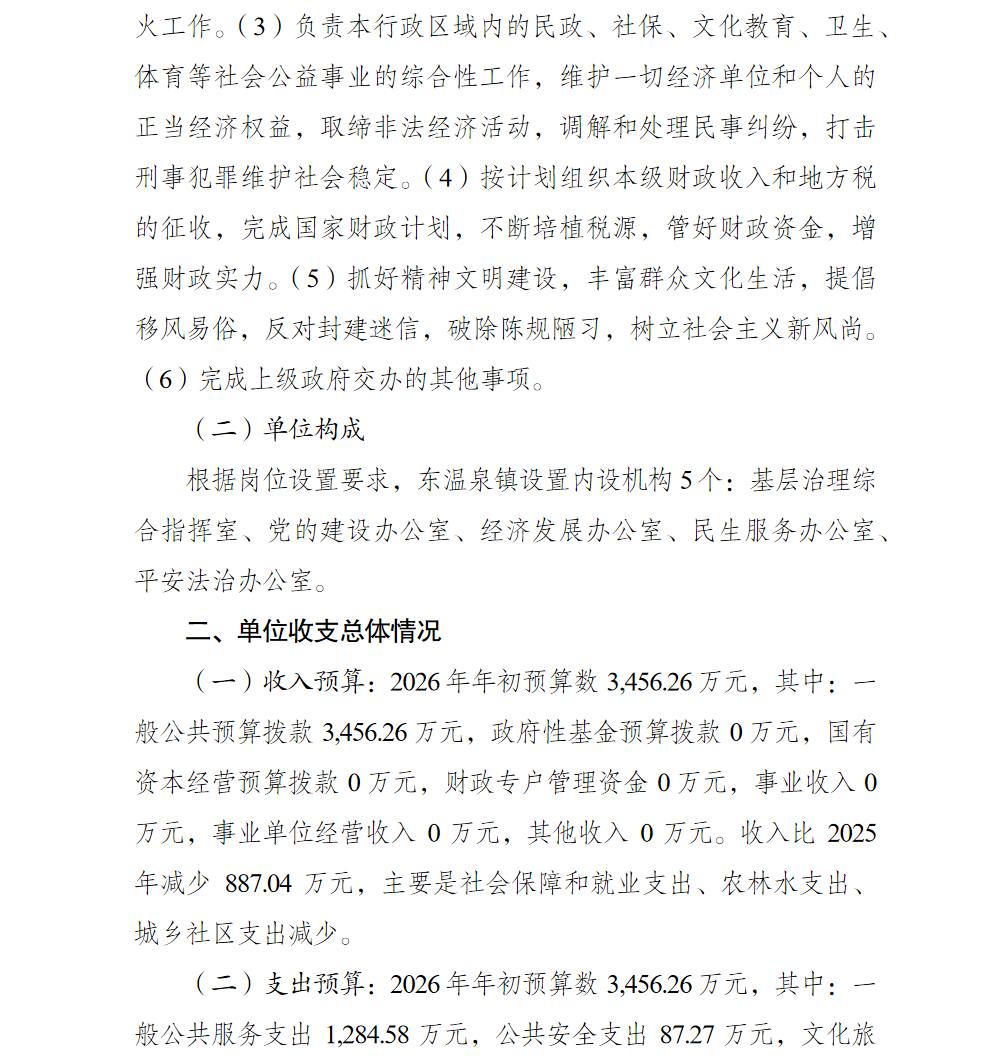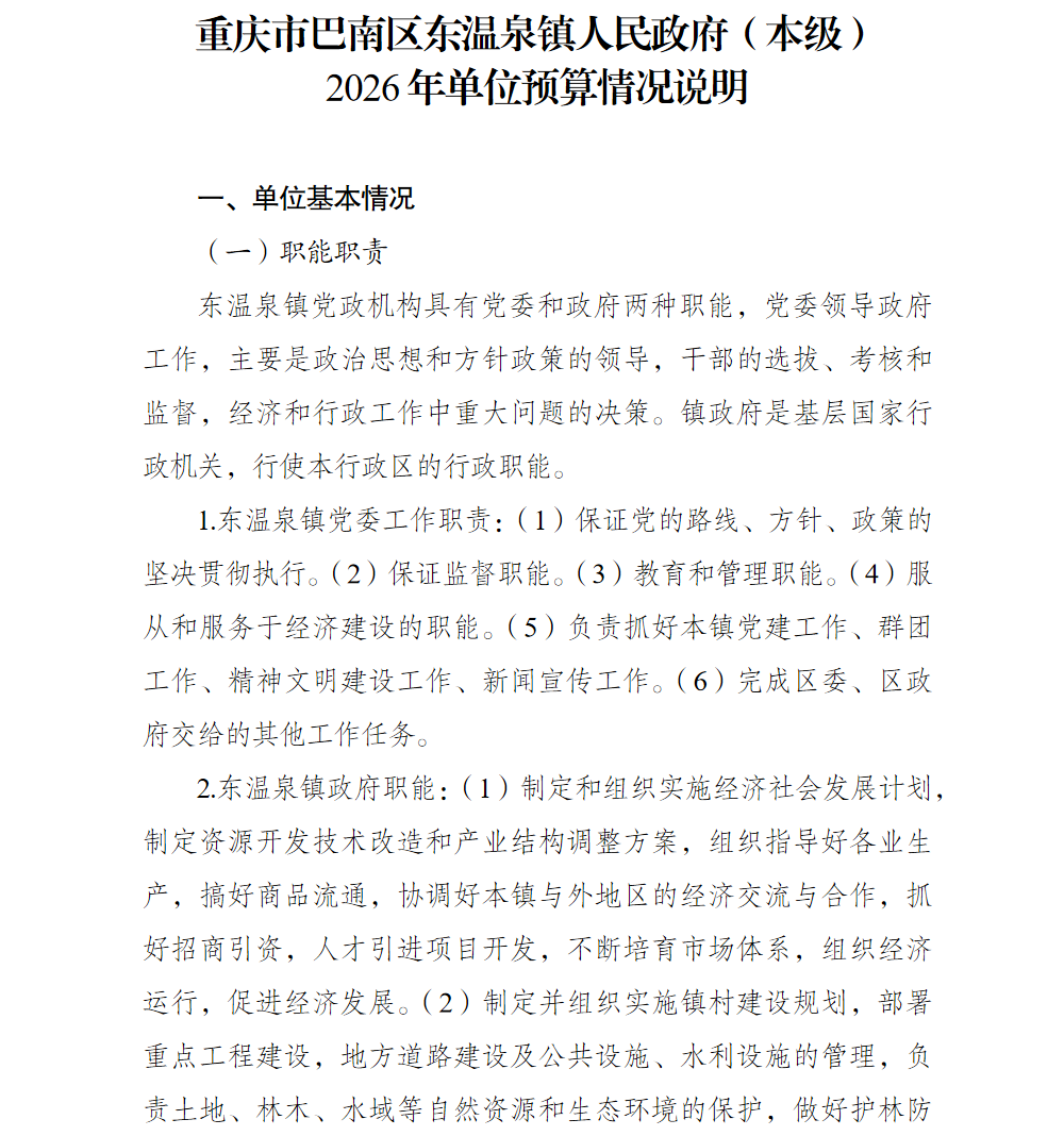 重庆市巴南区东温泉镇人民政府(本级)2026年单位预算情况说明
