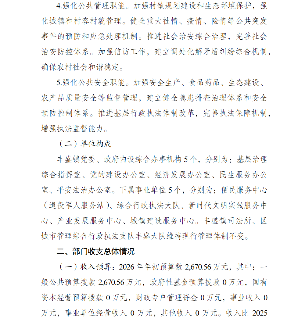 重庆市巴南区丰盛镇人民政府2026年单位预算公开