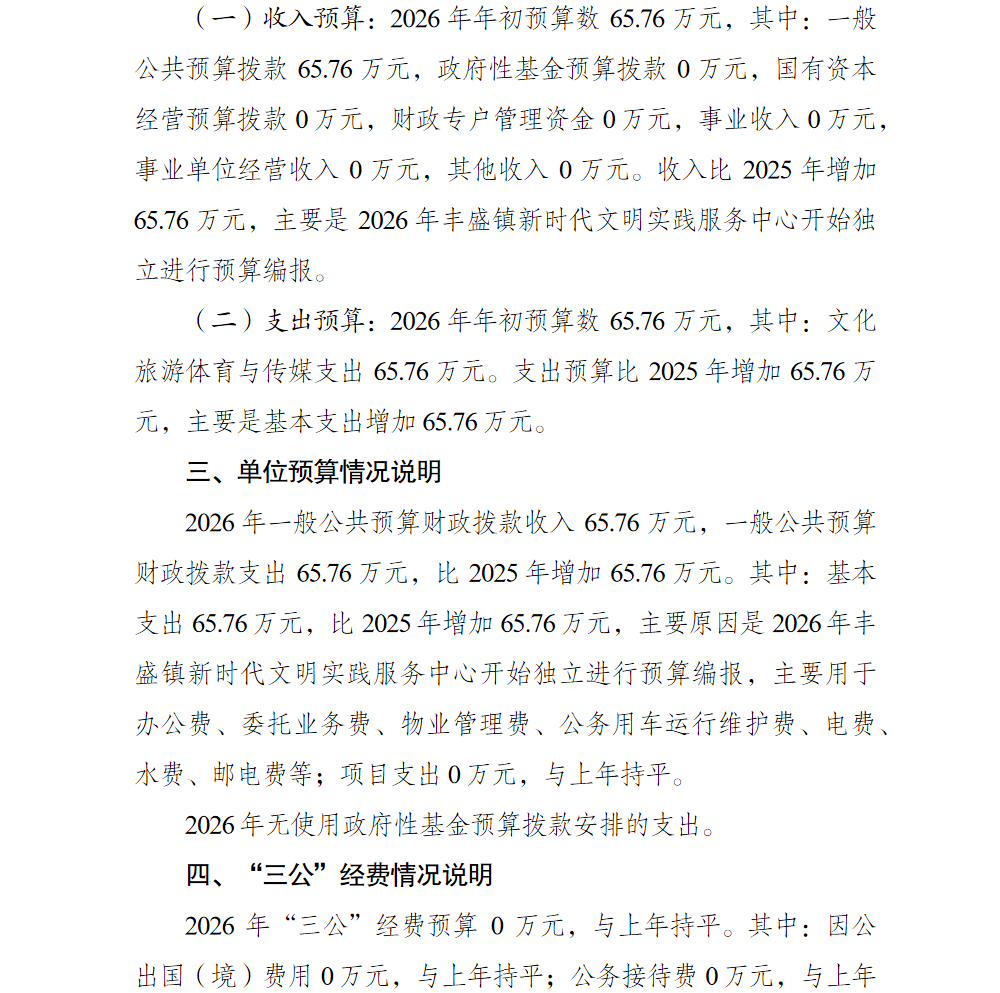 重庆市巴南区丰盛镇新时代文明实践服务中心2026年单位预算公开