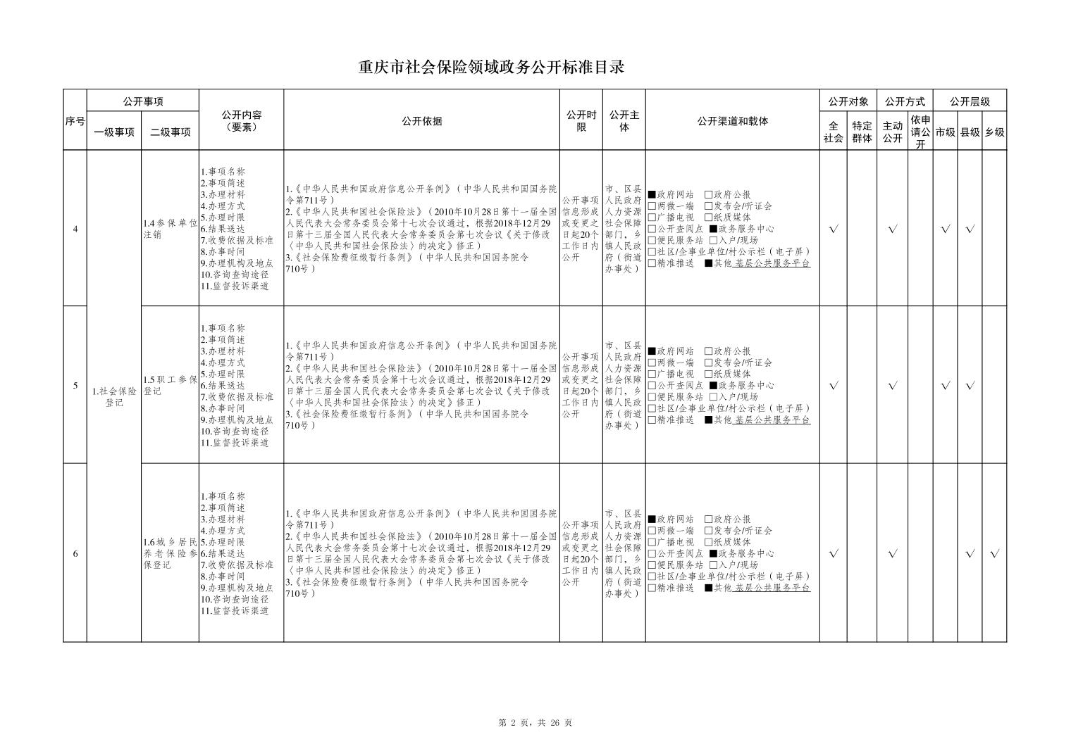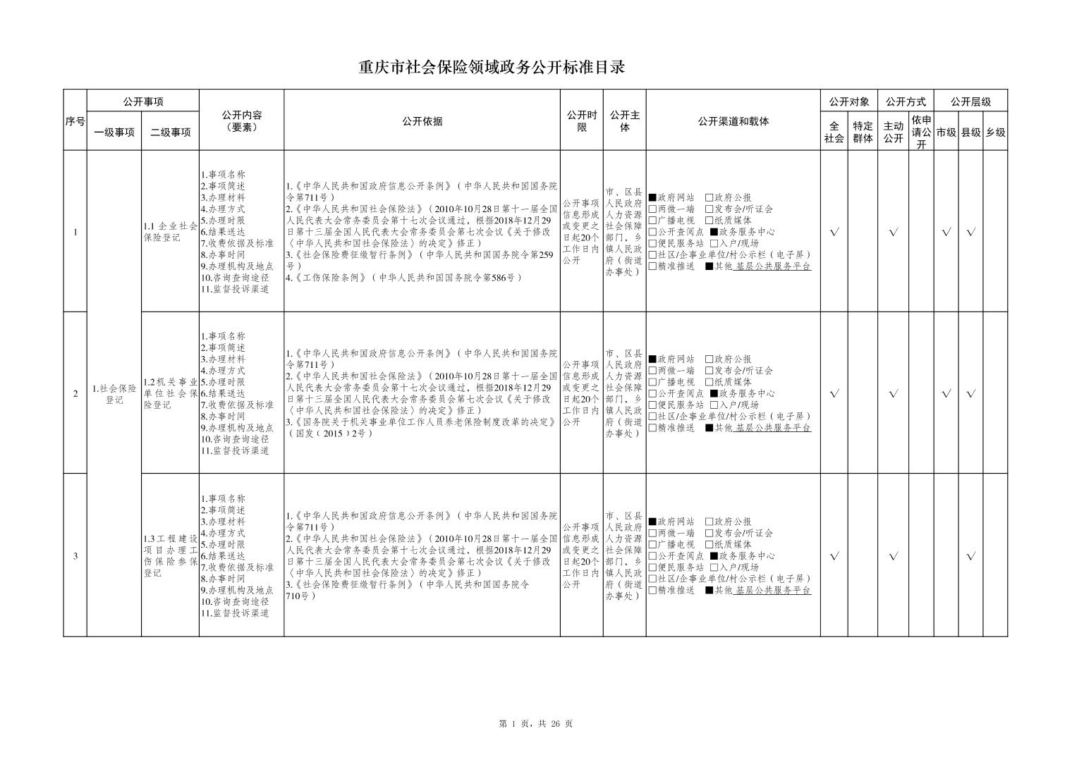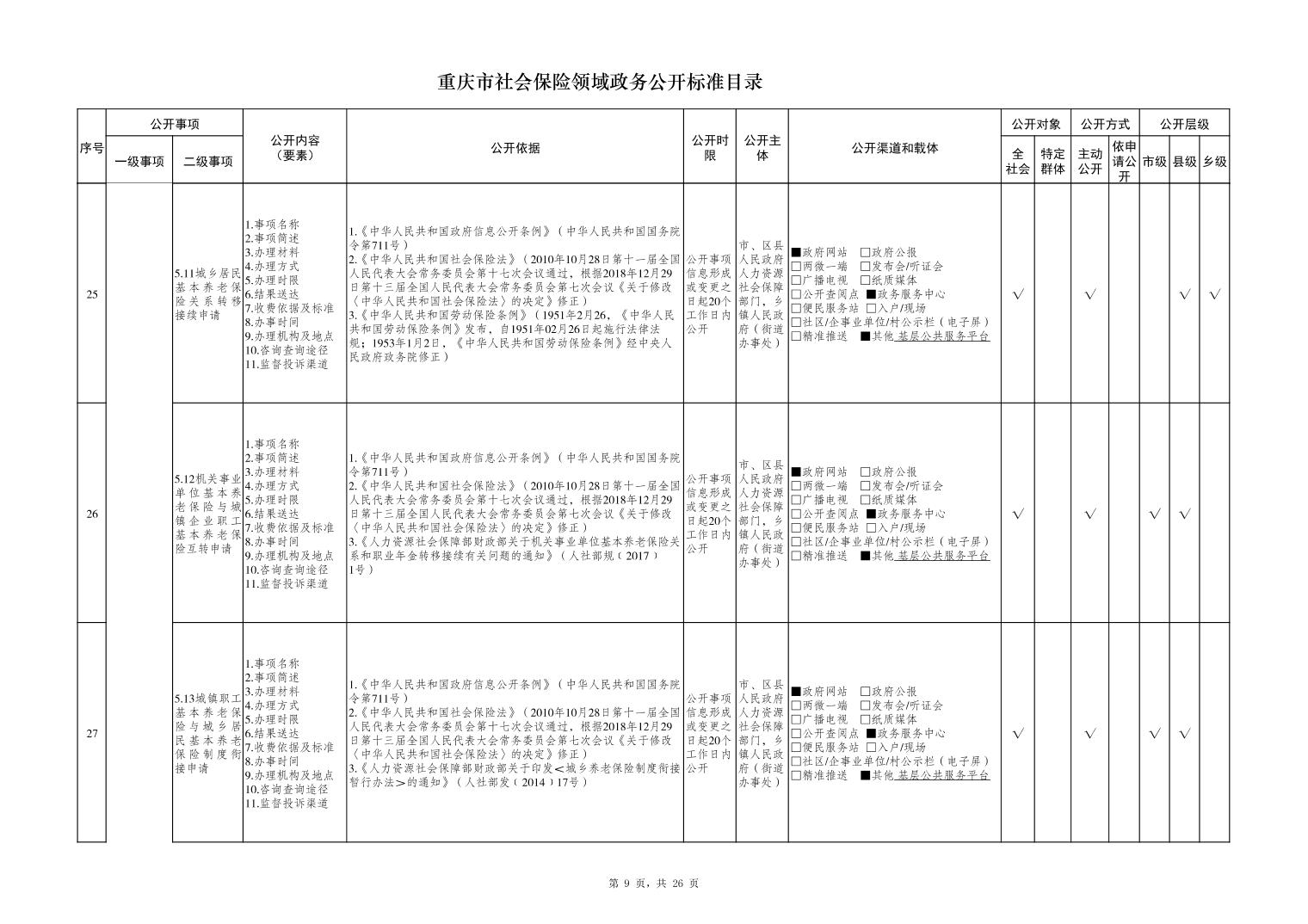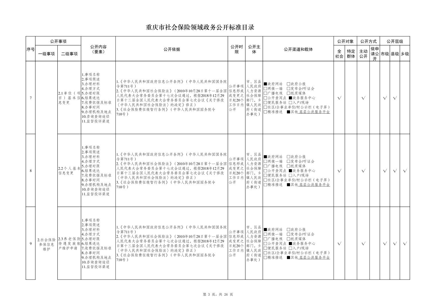 重庆市巴南区人民政府惠民街道办事处社会保险领域政务公开标准目录(2025版)
