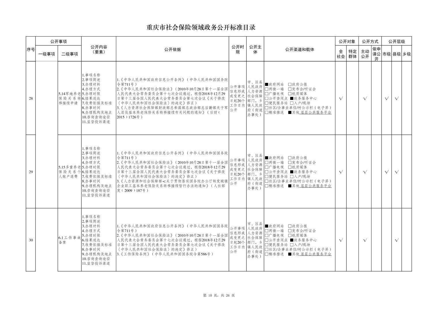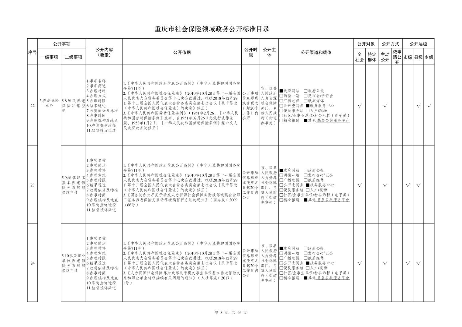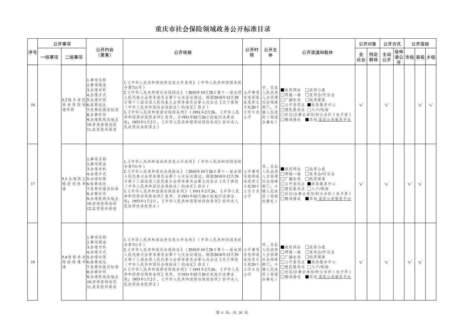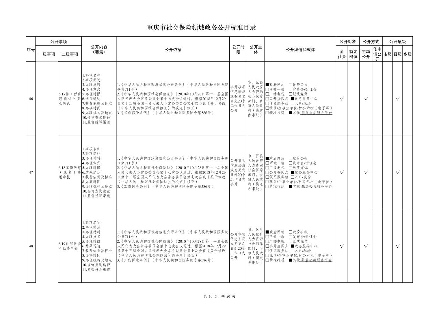 重庆市巴南区人民政府惠民街道办事处社会保险领域政务公开标准目录(2025版)