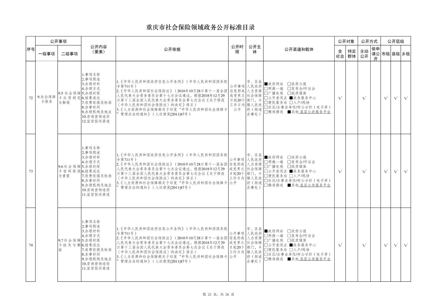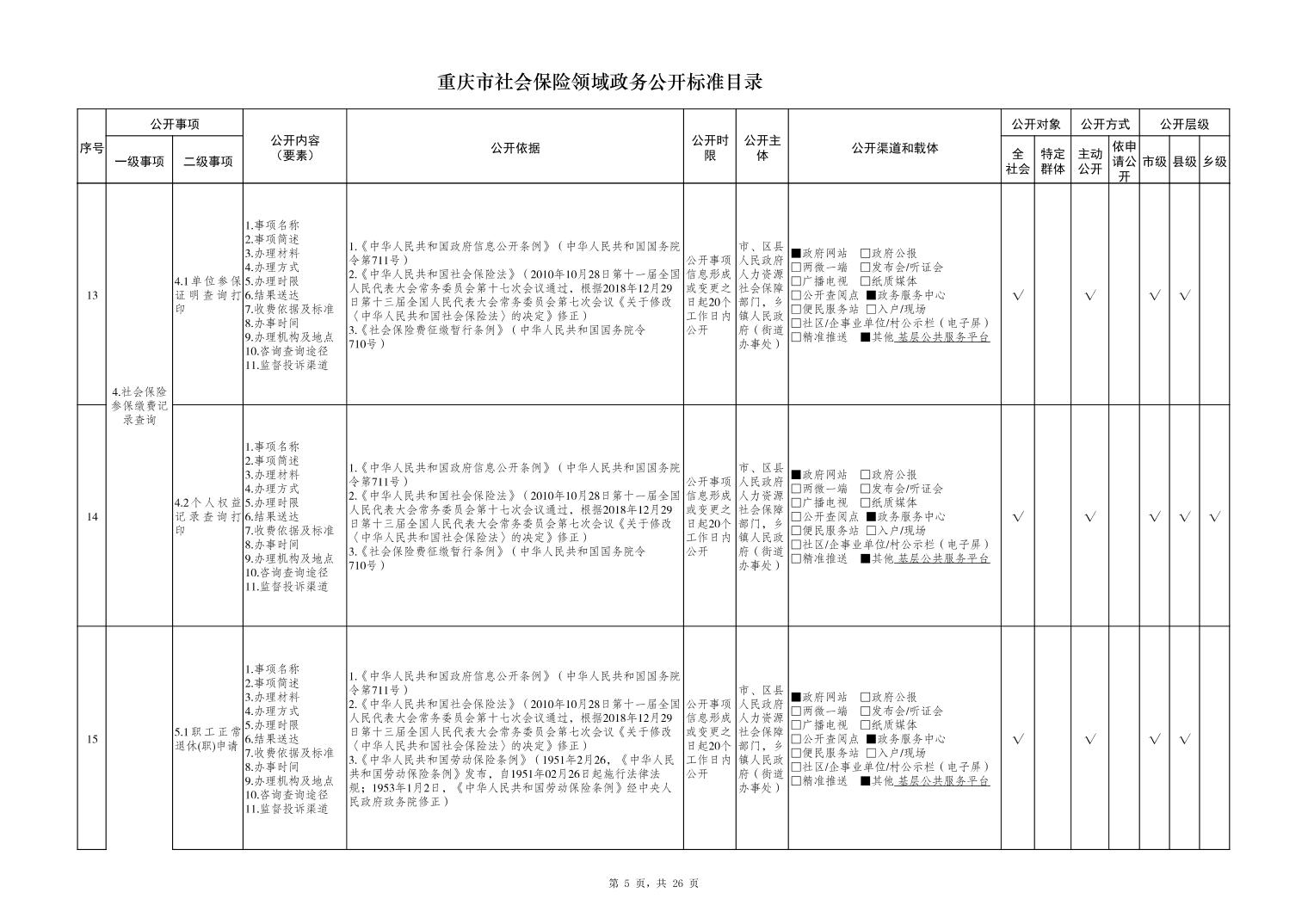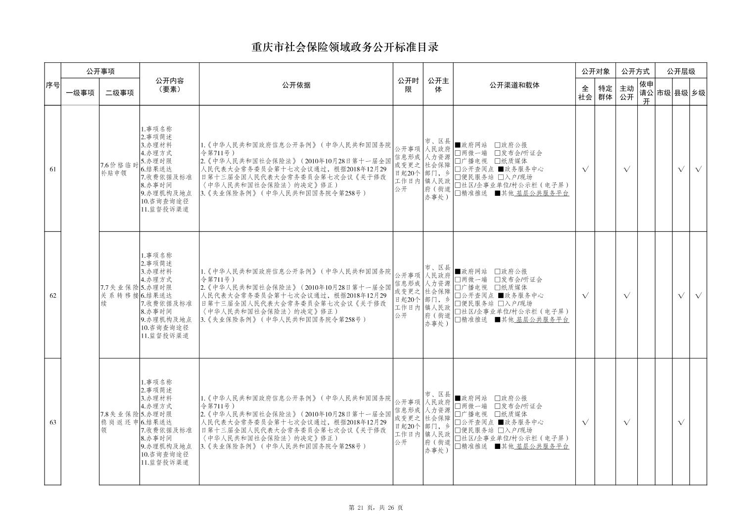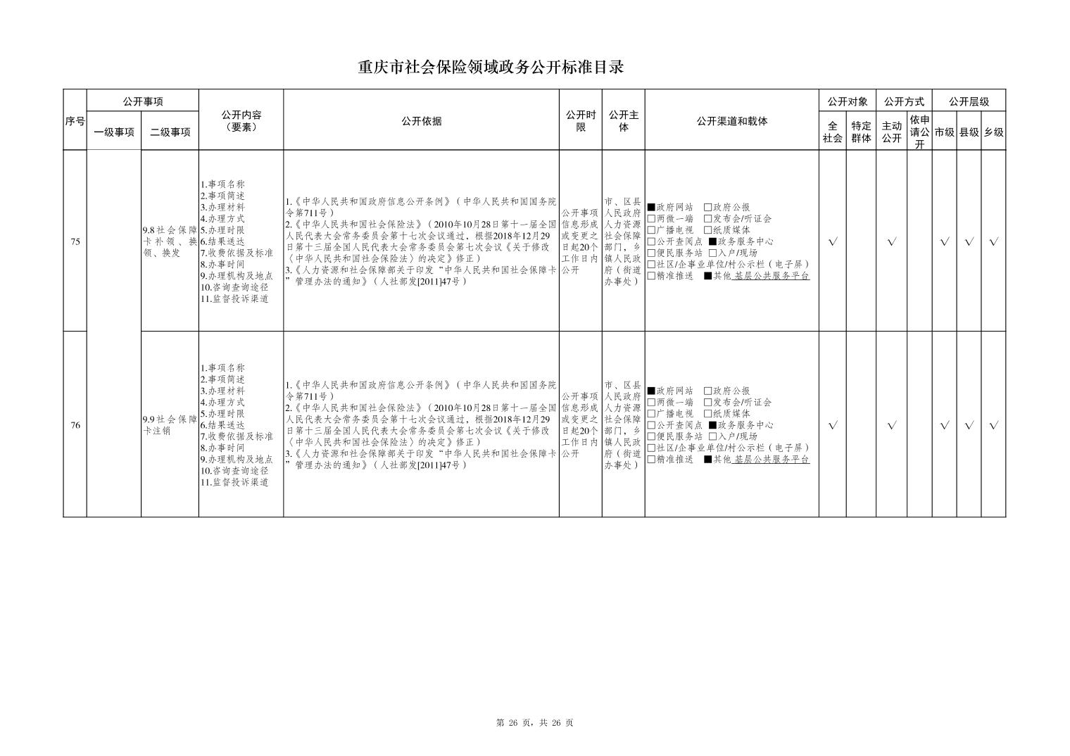 重庆市巴南区人民政府惠民街道办事处社会保险领域政务公开标准目录(2025版)