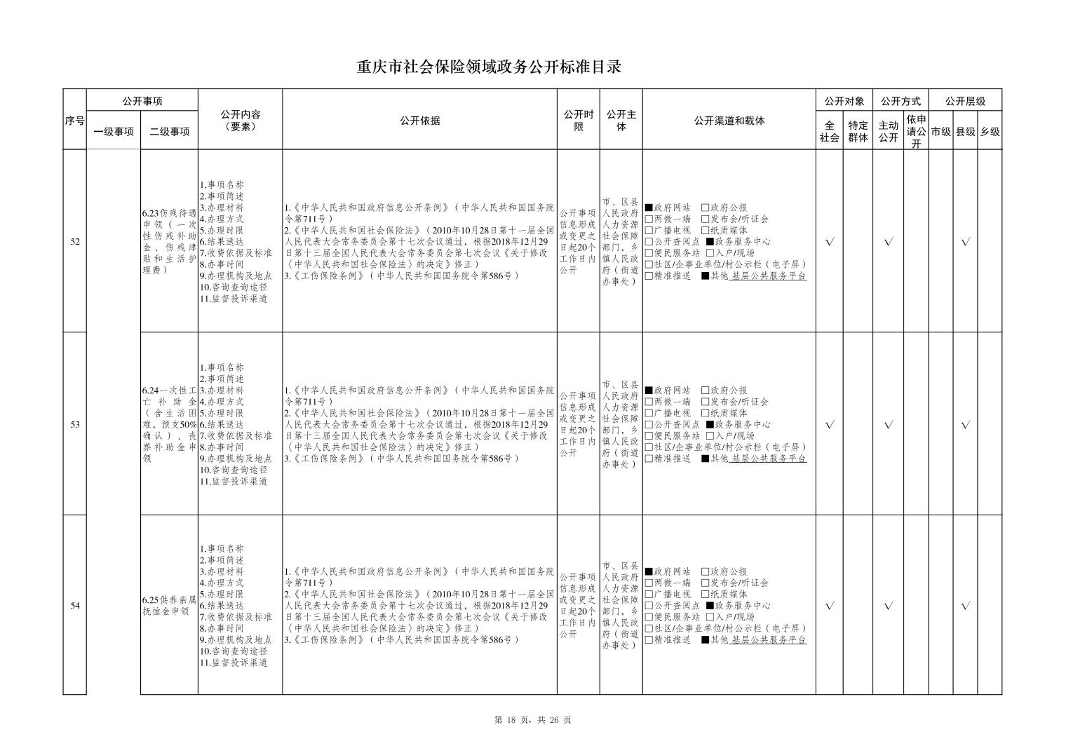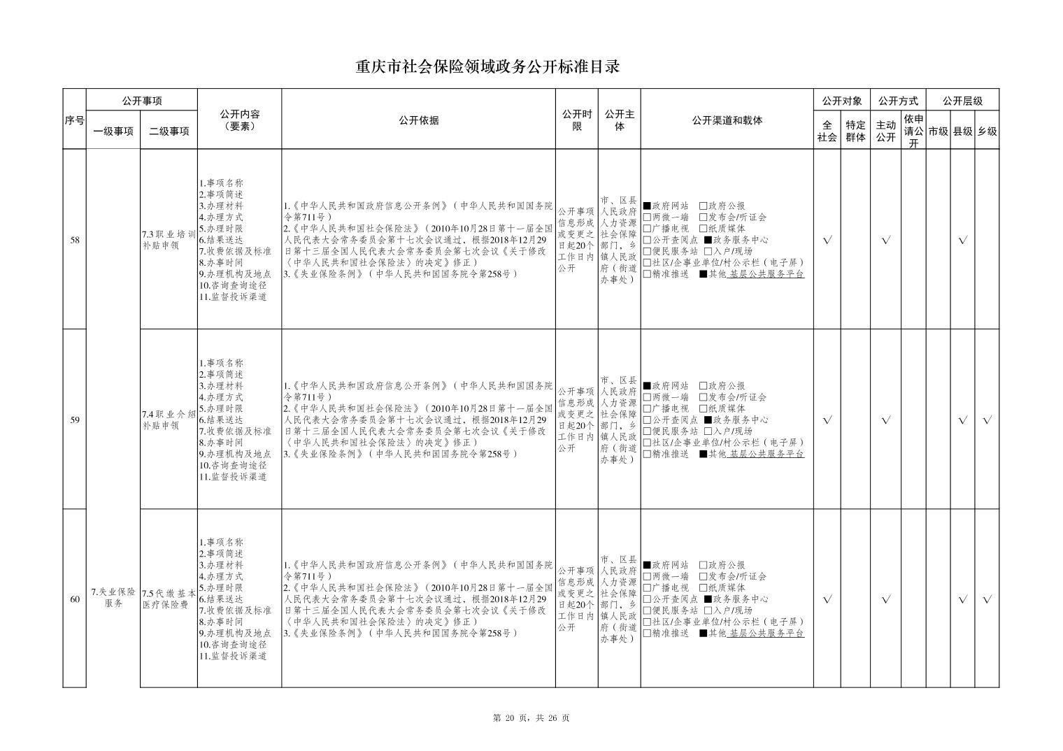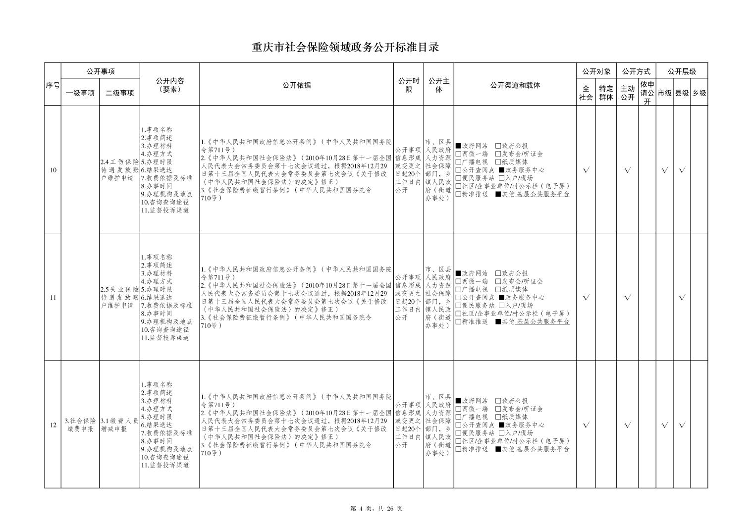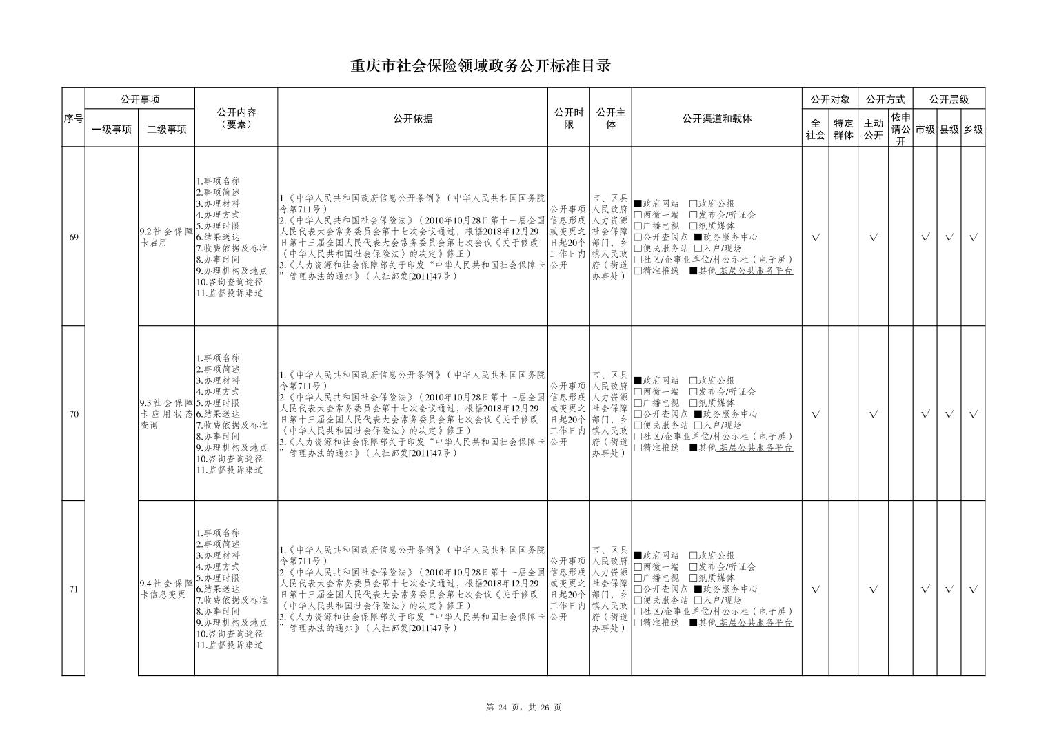 重庆市巴南区人民政府惠民街道办事处社会保险领域政务公开标准目录(2025版)