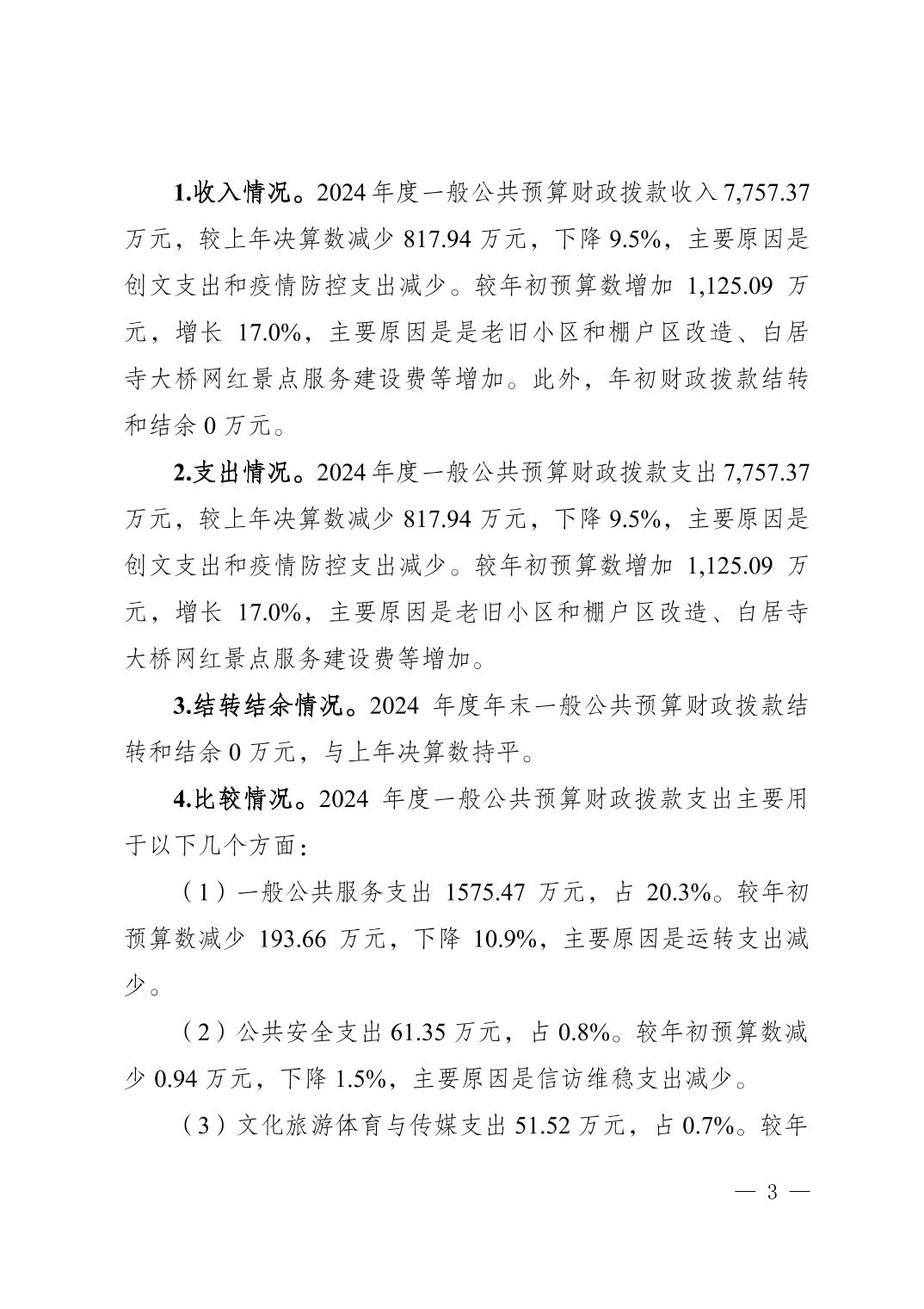重庆市巴南区人民政府花溪街道办事处(本级)2024年单位决算说明及附表