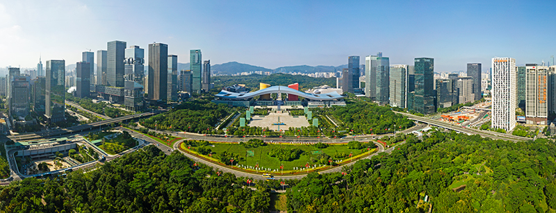 这是在广东省深圳市拍摄的深圳市民中心和莲花山公园一线(2020年10月2日摄,无人机照片)。新华社记者 梁旭 摄