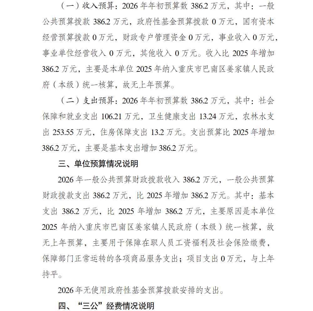 重庆市巴南区姜家镇产业发展服务中心2026年单位预算情况说明
