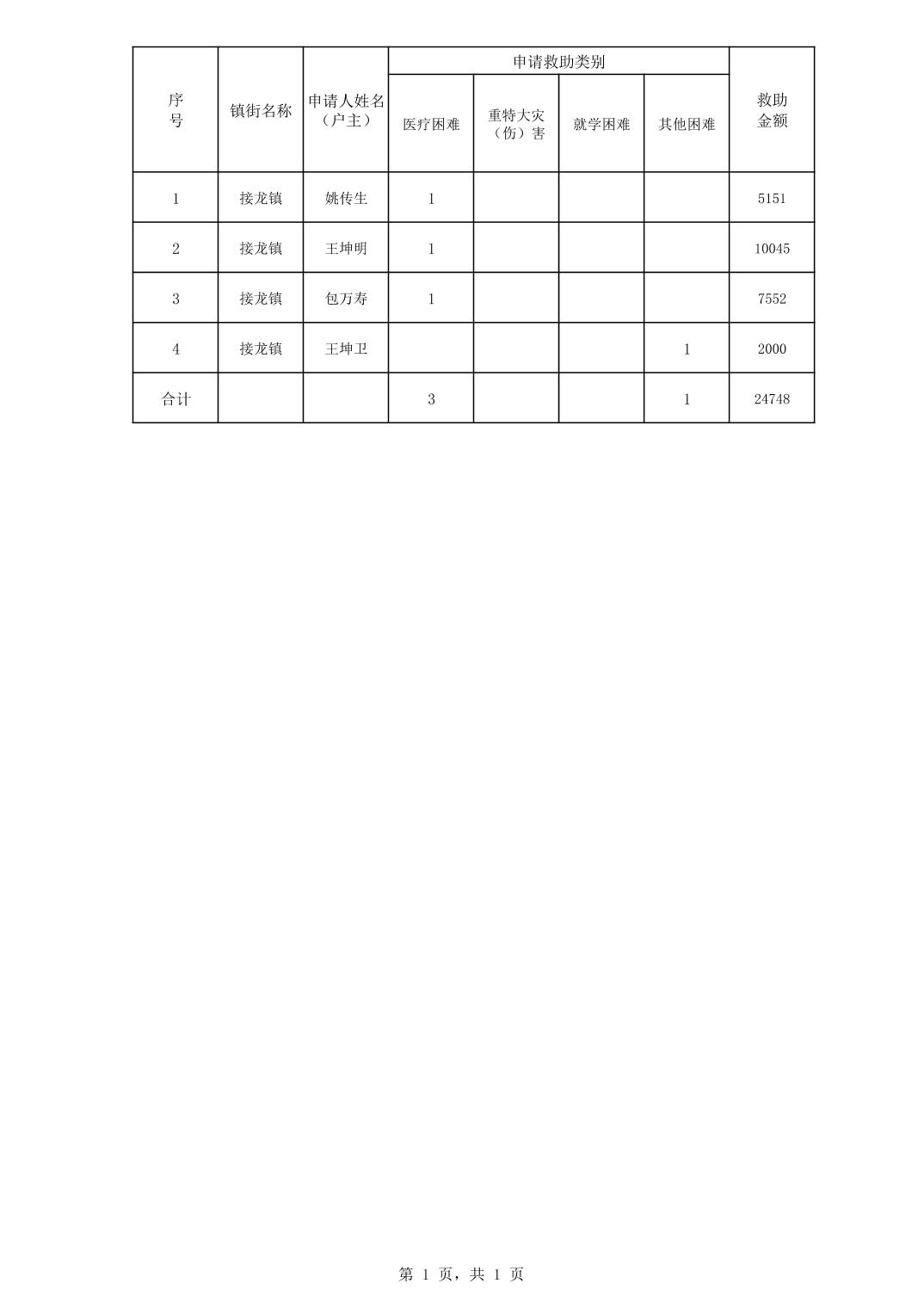 首页>接龙镇>政务公开>政府信息公开目录>基层政务公开>社会救助领域>审核审批信息>临时救助