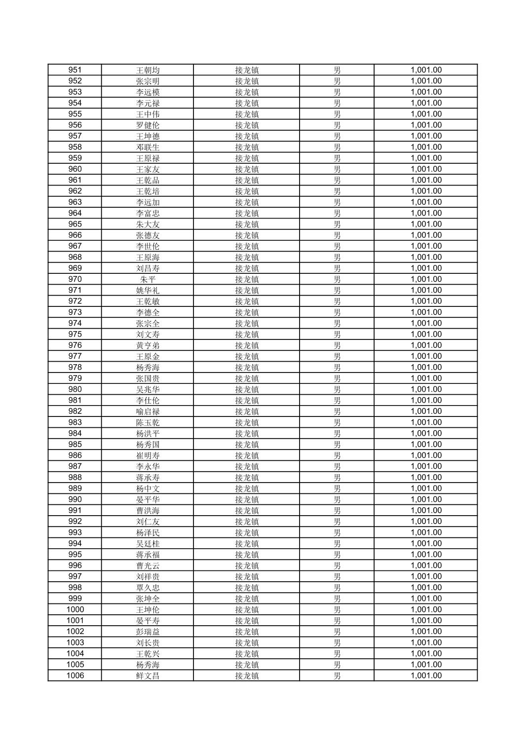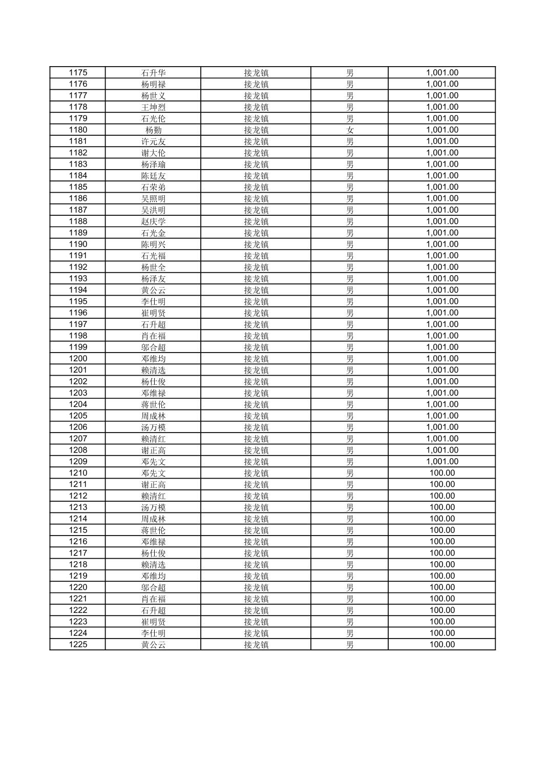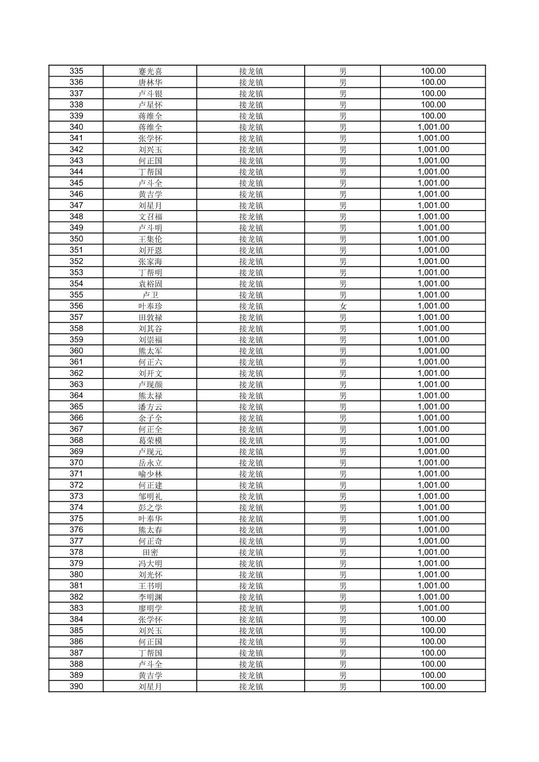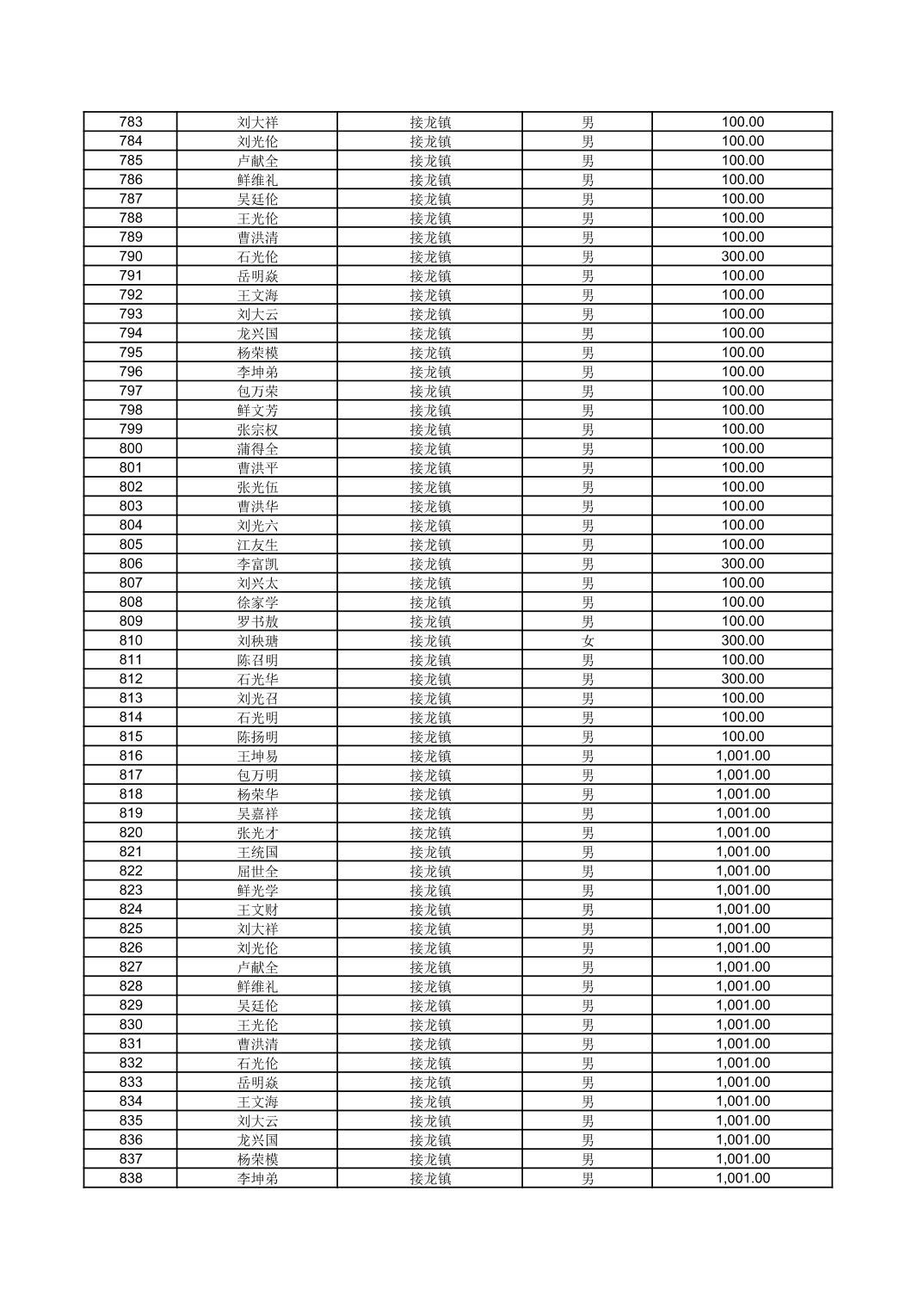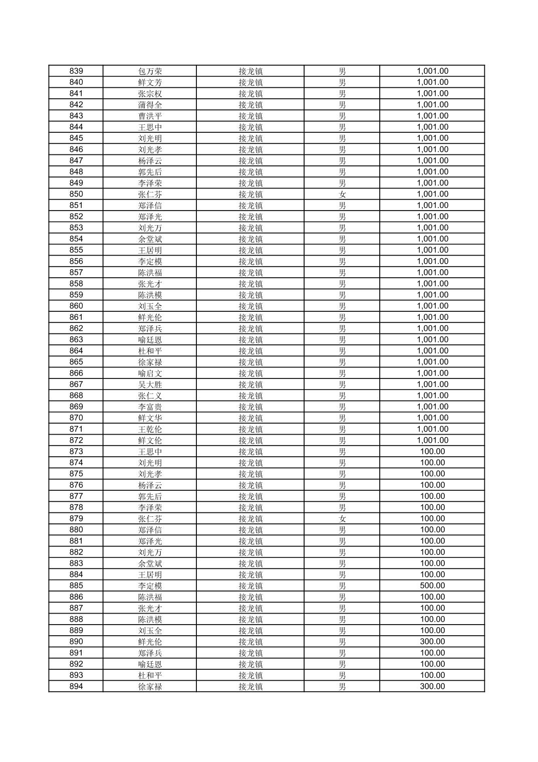重庆市巴南区接龙镇2025年特困人员集中供养生活费发放表(9月)