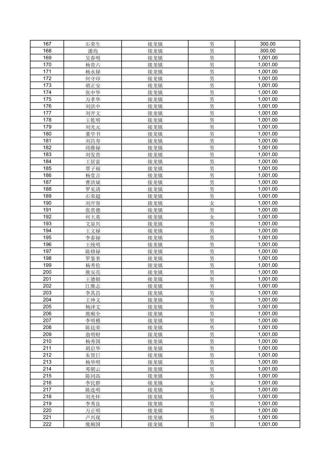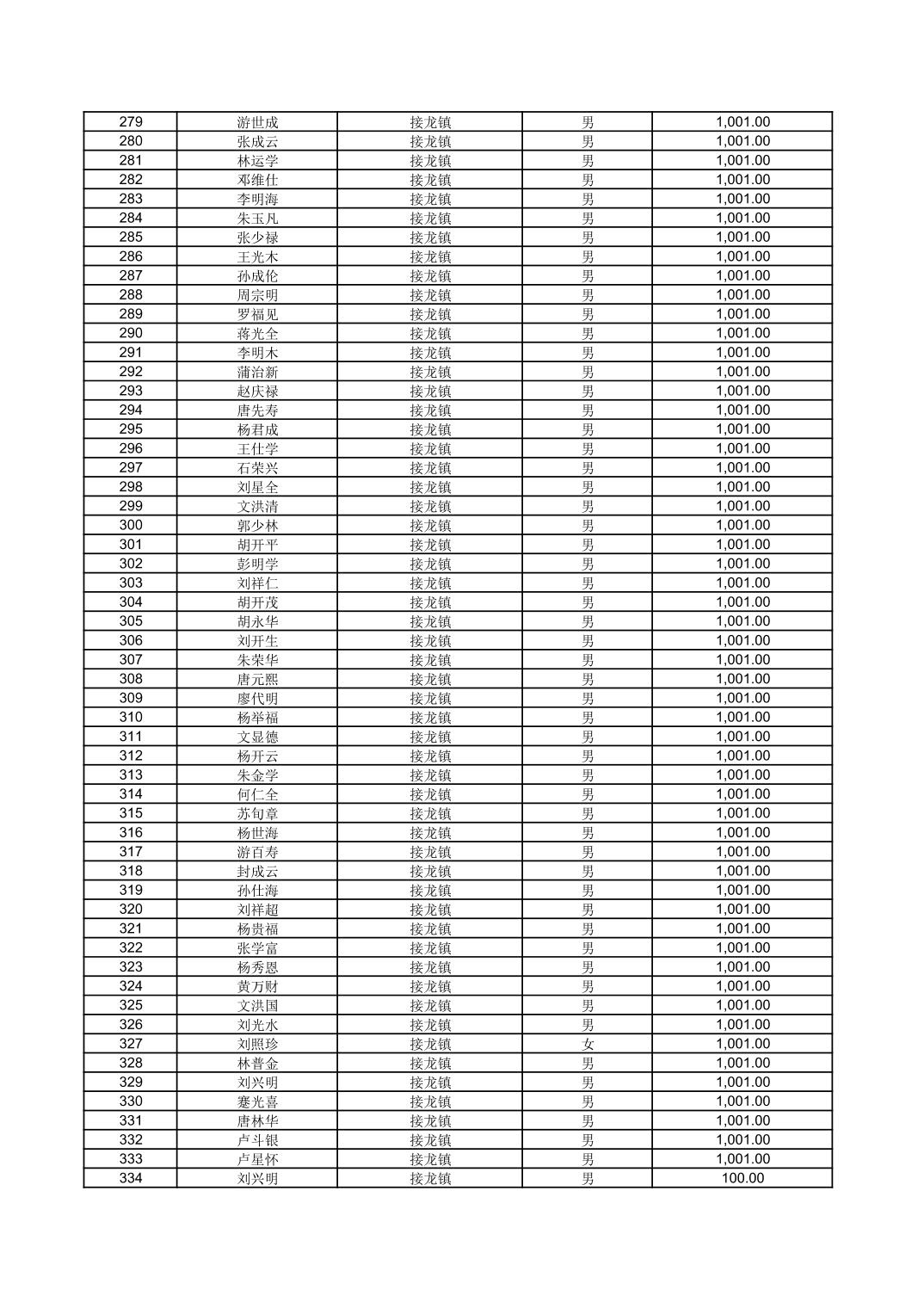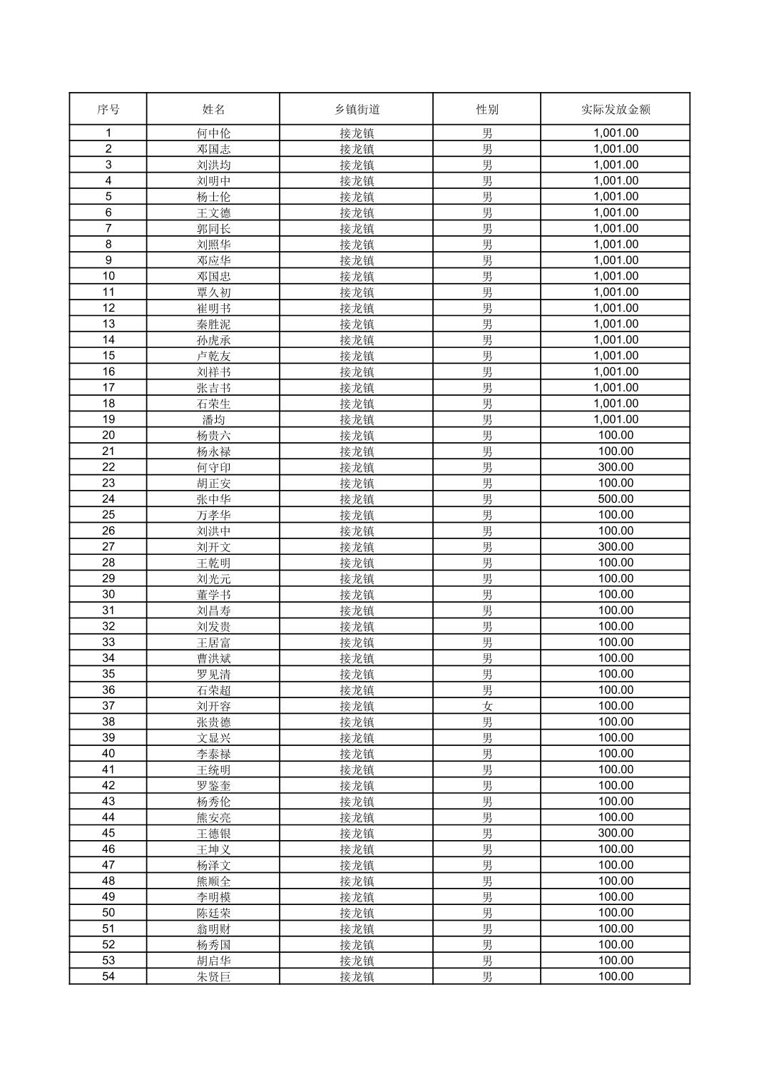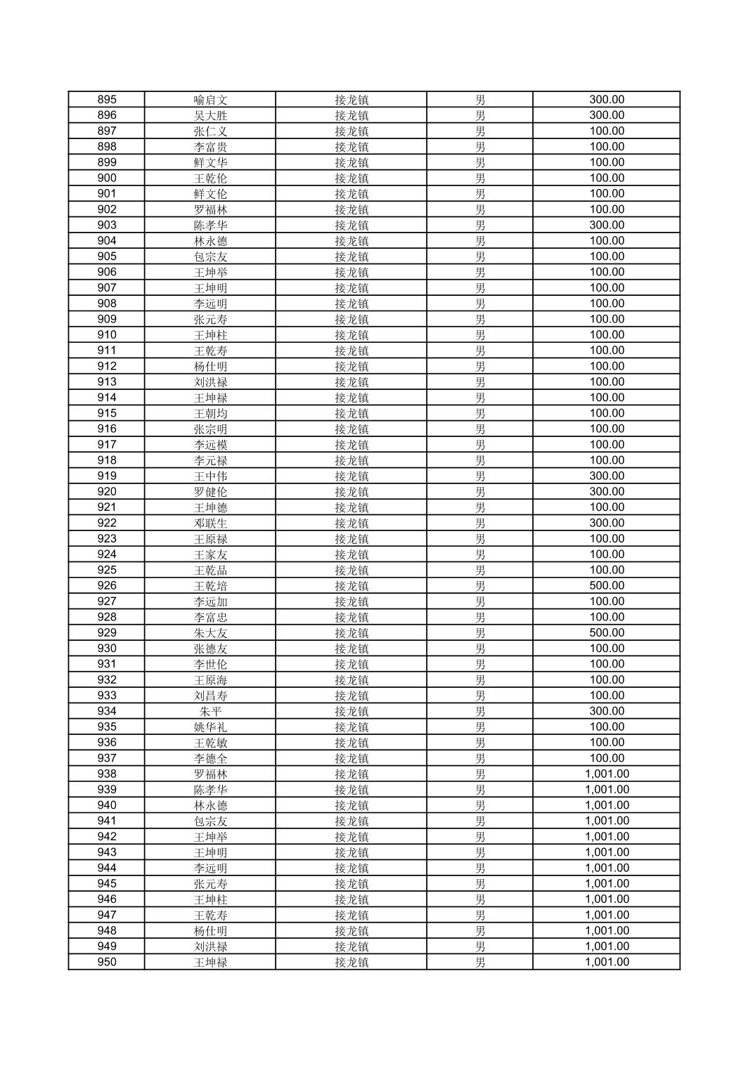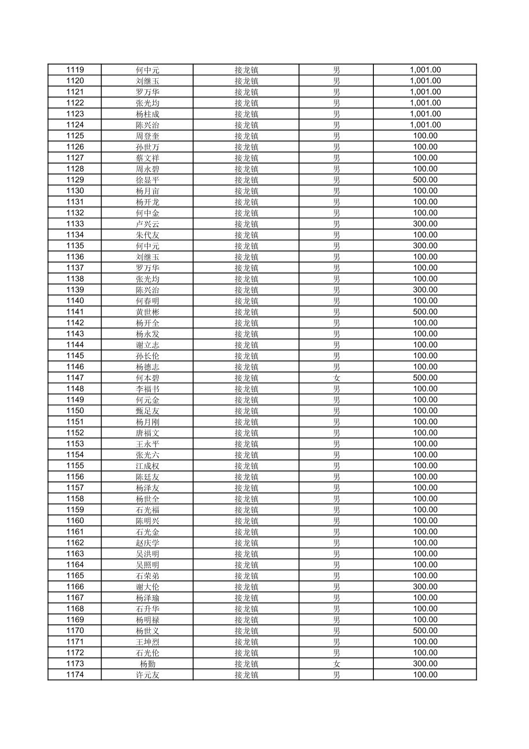 重庆市巴南区接龙镇2025年特困人员集中供养生活费发放表(9月)